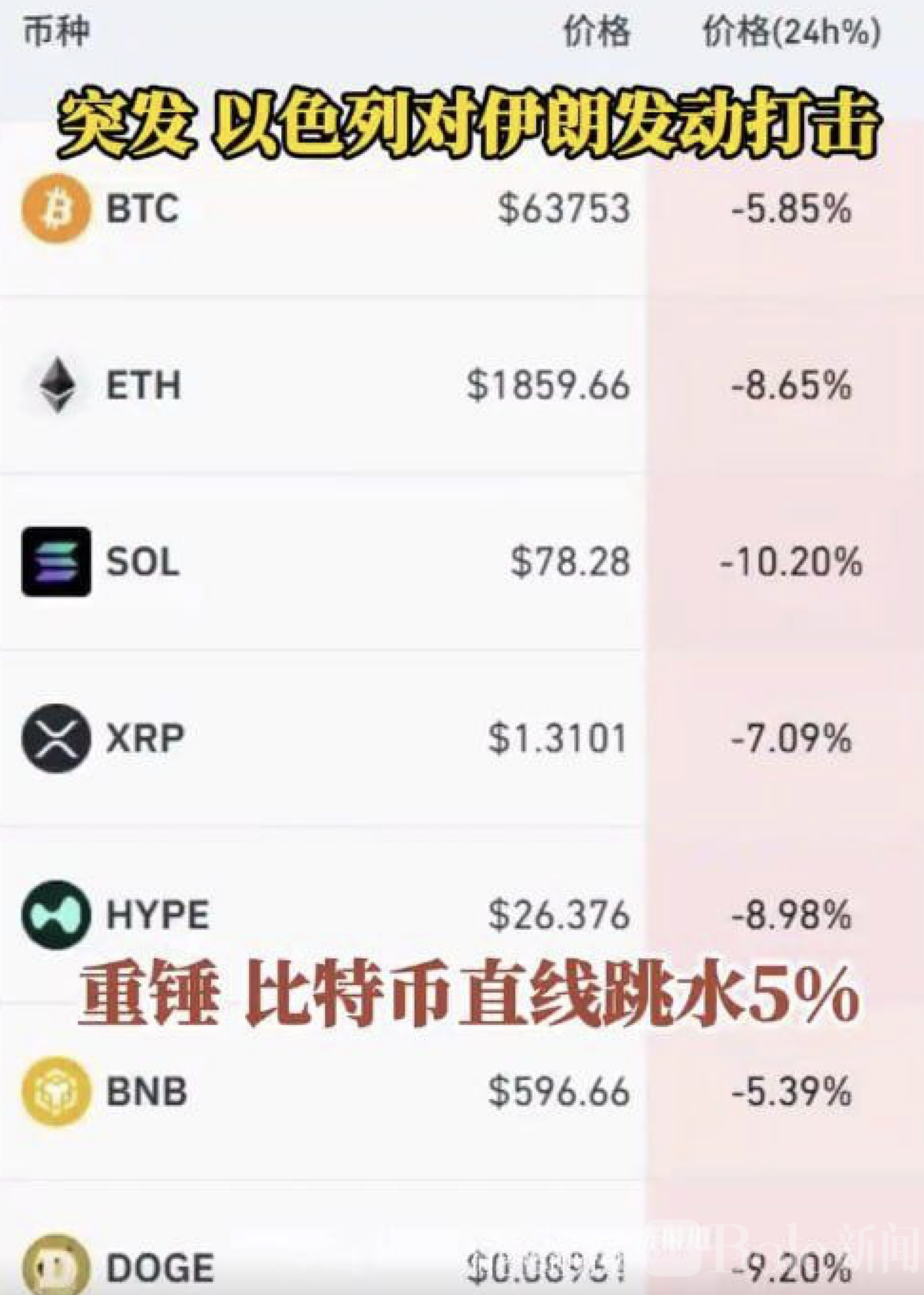 Bole新闻专讯:2月28日,比特币在全球加密货币市场遭遇“黑天鹅”事件后出现直线暴跌,一度跌破63500美元,引发市场恐慌。此次暴跌与伊朗遭袭消息持续扩散密切相关,投资者信心受到严重冲击。