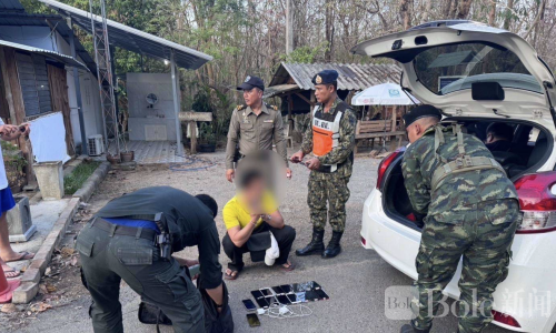 Bole新闻专讯:泰国甘霖府边境管理局近日开展大规模边境安全行动,成功截获一伙涉嫌跨国偷渡的中国籍人员。行动中,共抓获4名嫌疑人,其中包括一名泰籍司机,案件疑与跨国犯罪网络有关。执法部门表示,此类行动将作为常态化措施,持续清查非法入境及违法行为。