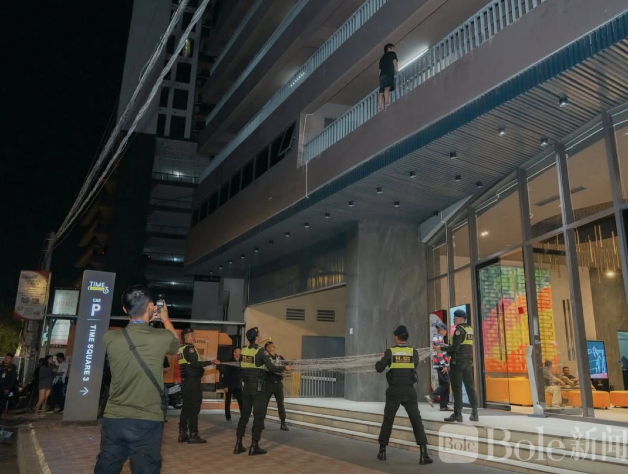 金边惊险一幕:中国男子公寓跳楼被紧急救下!