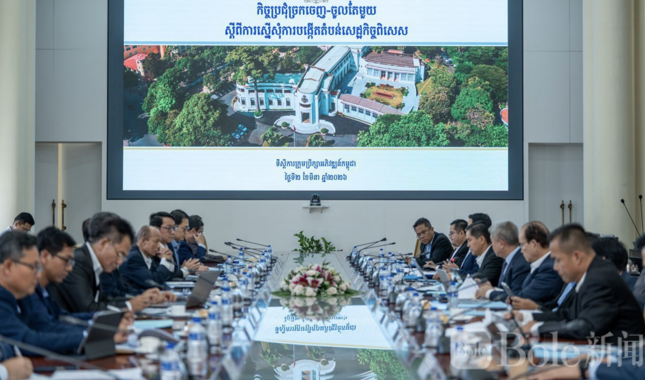 Bole新闻专讯:3月2日下午,柬埔寨发展理事会下属柬埔寨投资委员会在金边召开2026年第二次“单一窗口”会议,由投资委员会秘书长谢武提主持,会议重点审议了两个新经济特区设立申请。