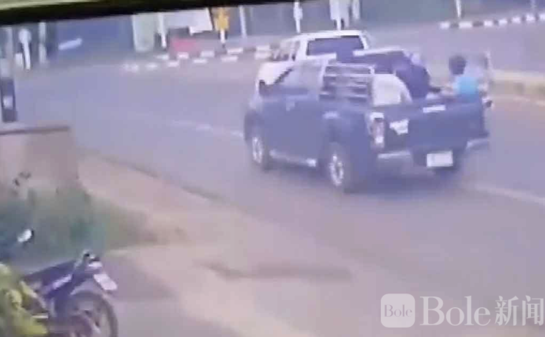 暴力追击!泰国皮卡撞倒3名摩托少年
