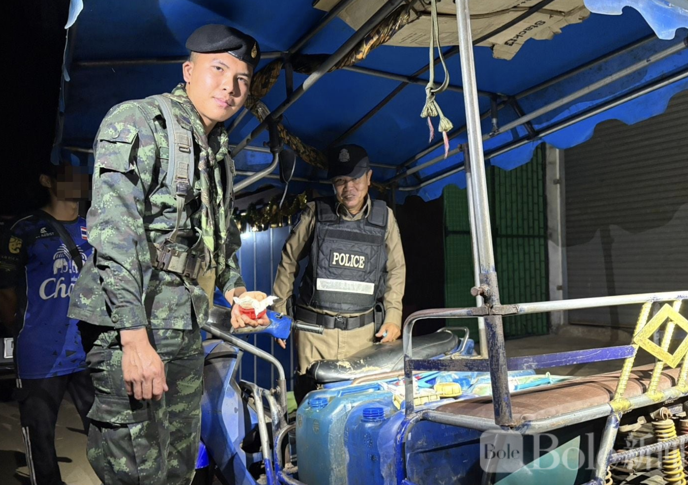 Bole新闻专讯:泰国西部与缅甸接壤的边境地区近日展开打击走私行动。3月10日,泰国北碧府桑卡拉武里县安全部门在著名边境口岸“三塔关口”一带成功截获一起非法柴油跨境运输案件,一名缅甸男子当场被捕,警方同时缴获约120升柴油作为证物。