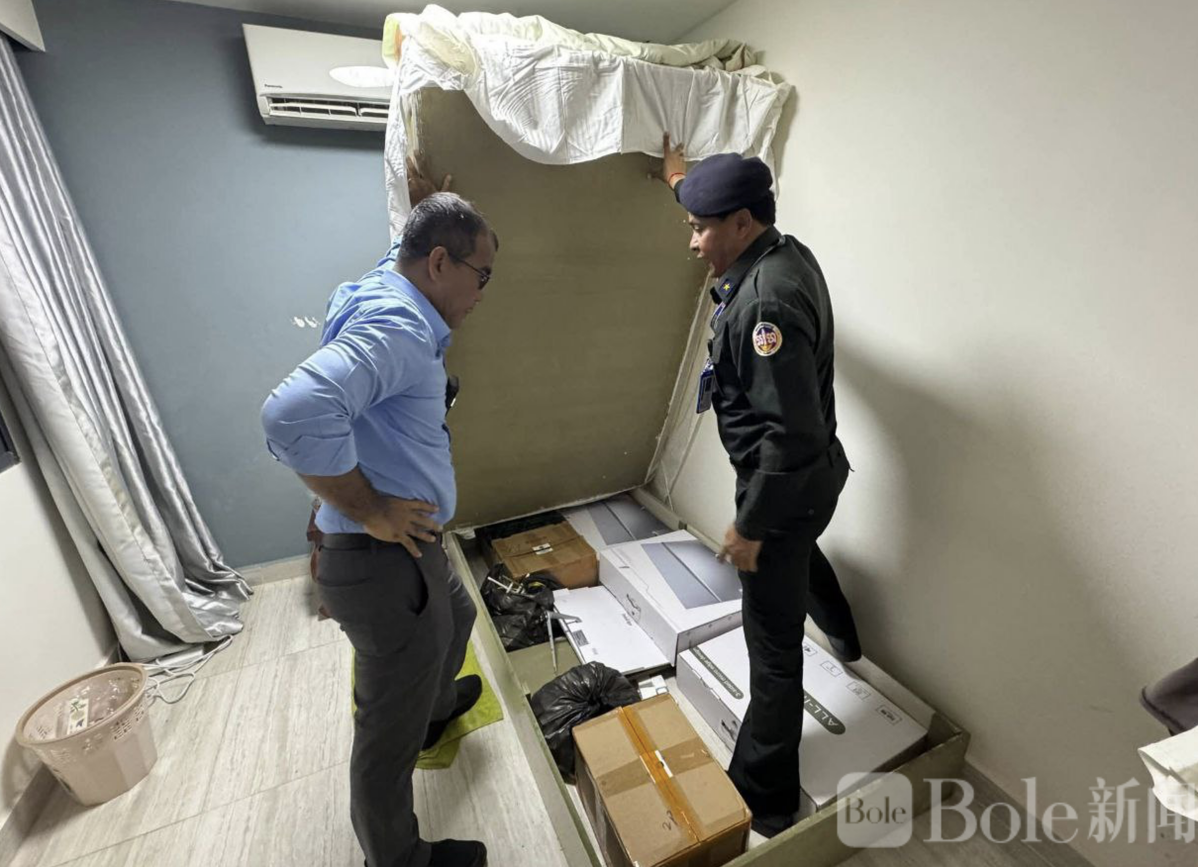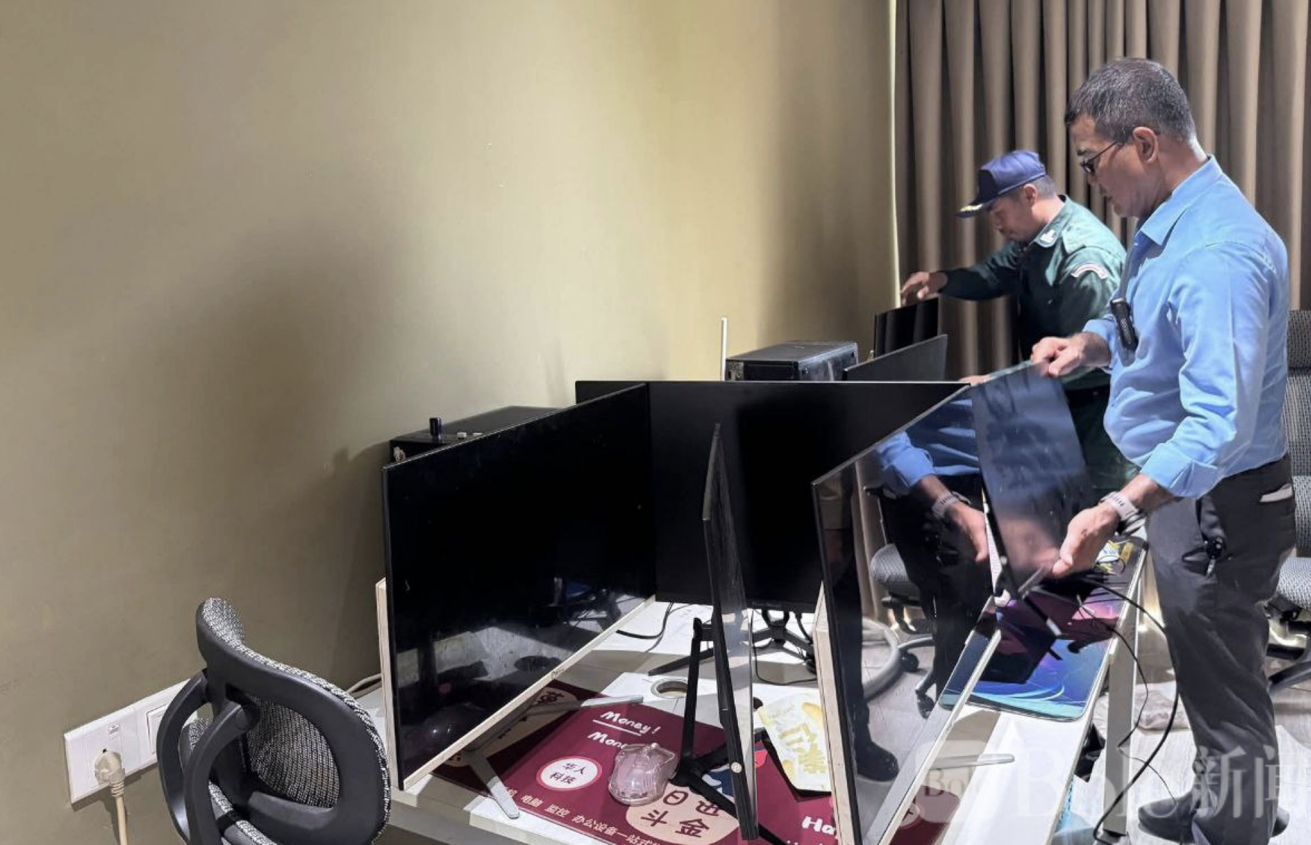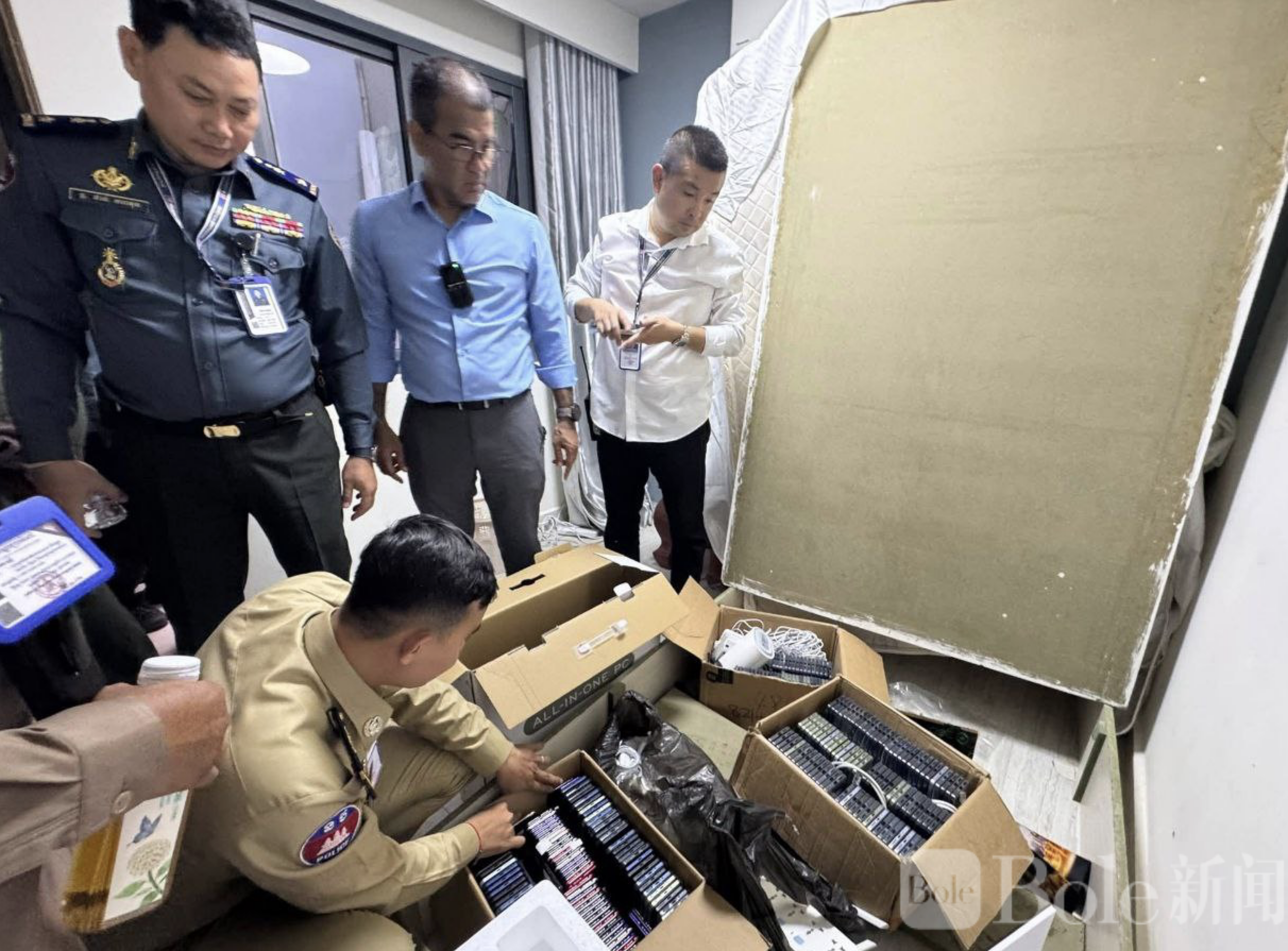 Bole新闻专讯: 柬埔寨金边警方10日凌晨展开突击执法行动,在占巴安普区捣毁一处涉嫌从事非法网络活动的服务点,现场多名人员被带走接受调查。