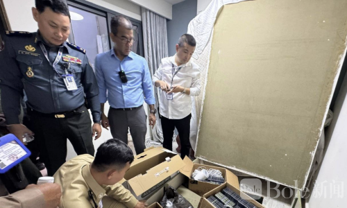 据执法部门消息,当天凌晨,警方根据线索对金边市占巴安普区一处可疑场所进行突击检查。行动中,执法人员对现场进行全面搜查,并查获多部手机以及相关通信设备,疑似用于从事非法网络业务及线上活动。