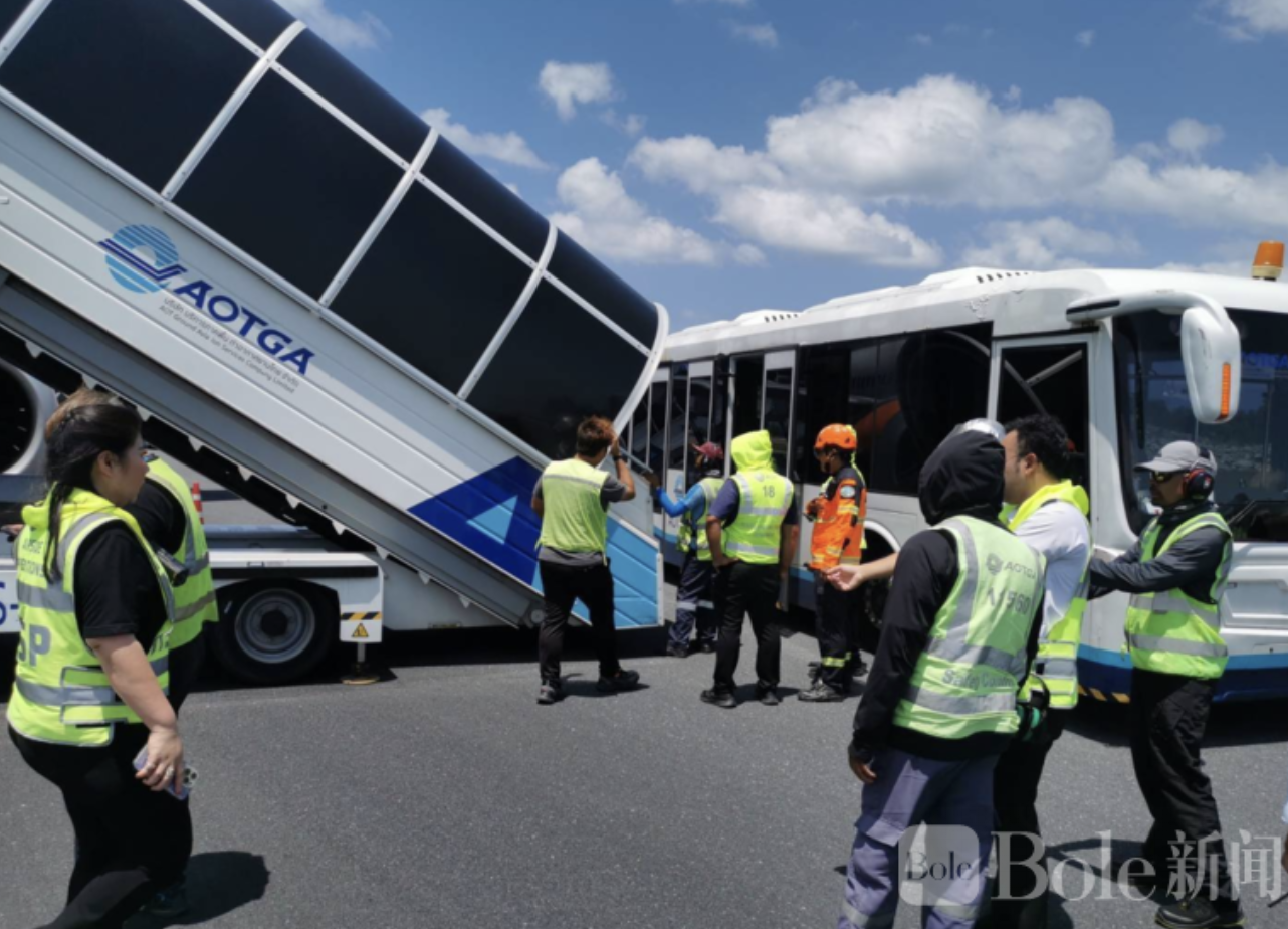 事故发生后,普吉机场警方与旅游警察迅速到场,控制现场并保障乘客安全。机场方面确认,此次事故属于Hard Landing(硬着陆),导致飞机前起落架折断,机身摩擦跑道,飞机严重受损。工作人员随即将所有乘客转移至机场候机室,确保安全。