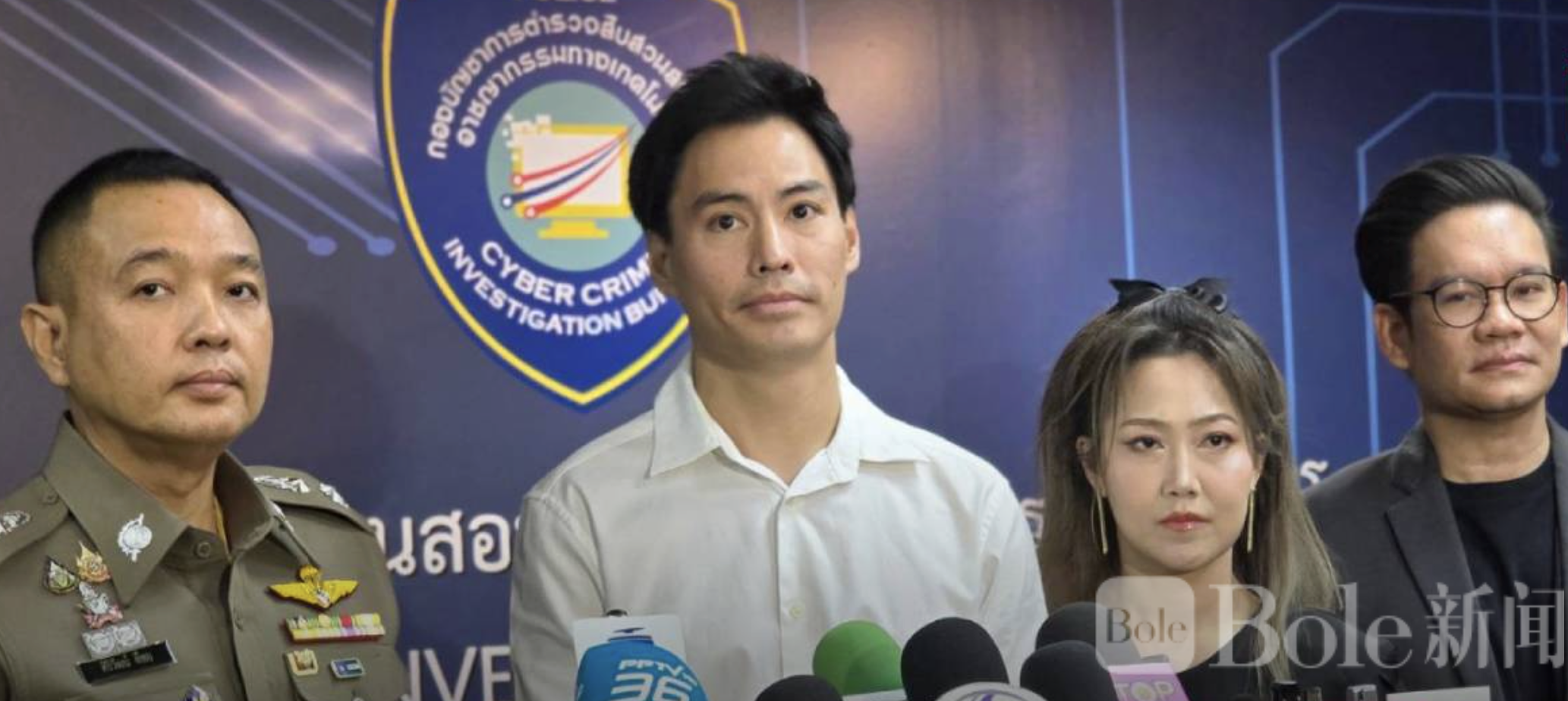 Bole新闻专讯:泰国知名演员纳文·耀帕昆(艺名“纳文塔”)与妻子帕萨维·帕亚库布(昵称“名媛南婉”)11日前往泰国网络犯罪调查局报案,控告不法分子盗用两人的姓名与照片,制作假新闻视频并附带网络赌博链接,诱导公众点击参与赌博。