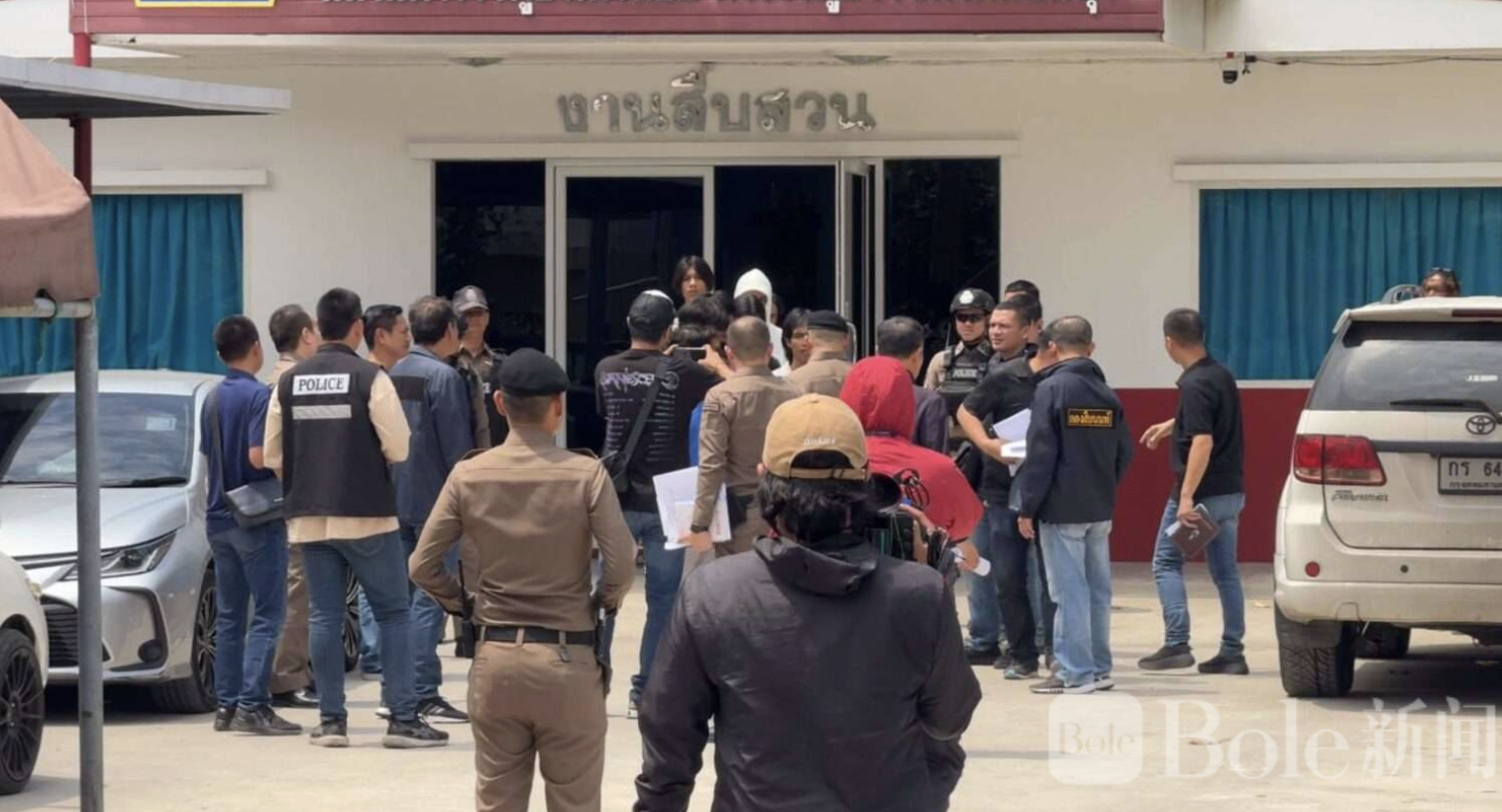 Bole新闻专讯:3月11日13:00,在三诺府赛诺警察局发生一起少年帮派枪击事件后,警方紧急介入控制现场。三诺府警察局长、警察少将德查比·孔迪联合副局长朱猜·坎查罗恩、副局长皮亚武·盖蒙尼、警察局长纳特德查·塔尼斯帕蓬以及侦查科长苏帕猜·斯里萨克共同召开会议,追踪案件进展,并将所有涉案人员控制带回审问。