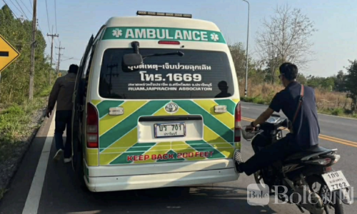 Bole新闻专讯: 泰国普拉钦府科克皮布区近日爆发严重油荒,一辆志愿救护车在执行救护任务途中因柴油用尽被迫停在路上,车内仍有患者,情势紧急。