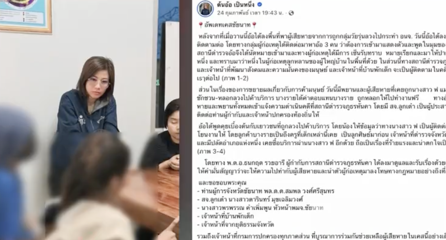 Bole新闻专讯:2026年3月17日,泰国猜纳府发生一起震惊社会的未成年性侵与卖淫案件。警方在调查一宗14岁少女被轮奸案件时,意外揭露出一个以未成年人为核心的非法性交易团伙,其中一名年仅15岁的少女竟被指为“老鸨”,专门诱骗受害者落入陷阱。