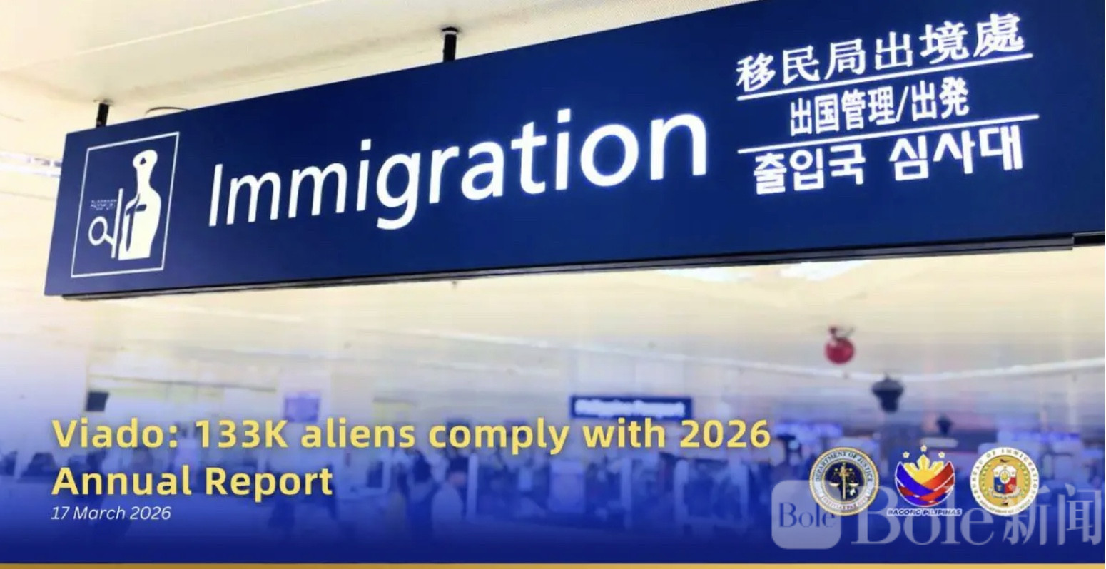 Bole新闻专讯:菲律宾移民局(BI)近日宣布,截至3月1日,今年共有133,372名持有移民或非移民签证的外籍人士完成了年度报告申报。虽然这一数字略低于2025年的约135,000人,但移民局官员表示,这种小幅下降在预料之中,主要源于外籍人口自然波动以及疫情后部分外籍人士减少居留的趋势。