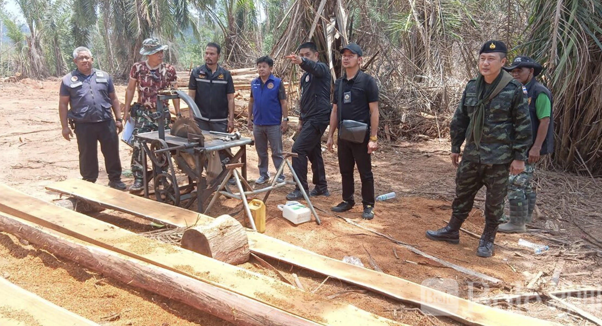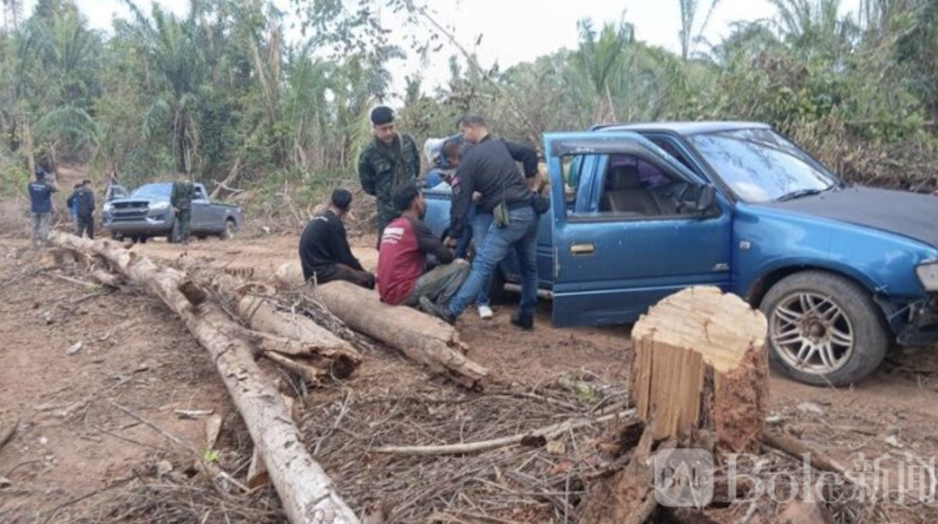 Bole新闻专讯:泰国春武里府山林深处近日上演一场“现实版围堵行动”。当地多部门联合执法,在帕提乌县与他塞县交界的一处山顶区域捣毁一处非法锯木据点,当场抓获3名涉嫌从事盗伐木材活动的嫌疑人,并查扣一批重型机械及毒品等证物。