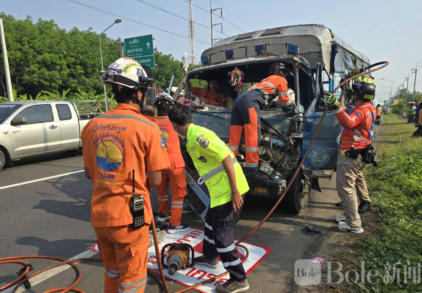 Bole新闻专讯:泰国武里南府3月19日发生一起校外活动交通事故,一辆载有幼儿园至小学六年级学生及家长约100人的6轮客车,在前往参观途中追尾一辆皮卡车,造成多人受伤,所幸学生均未受伤。