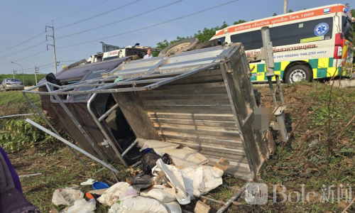 另一辆涉事皮卡车则侧翻在路旁甘蔗地内,车上4名乘客全部受伤,其中2人伤势严重,已被紧急送往医院救治。同时,事故还导致路边一根照明电线杆受损。