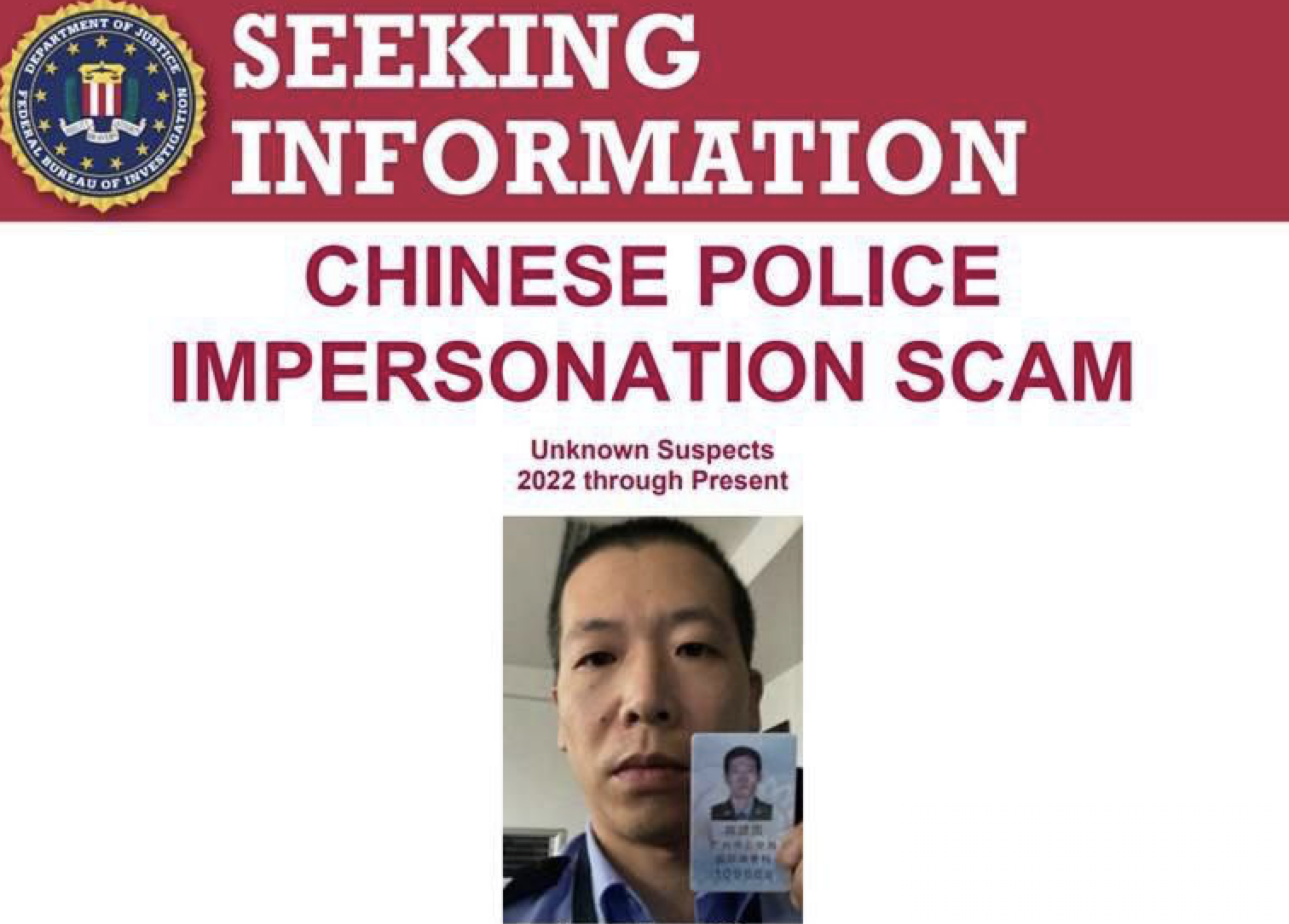 FBI通缉涉诈男子,专门冒充执法人员勒索中国留学生钱财