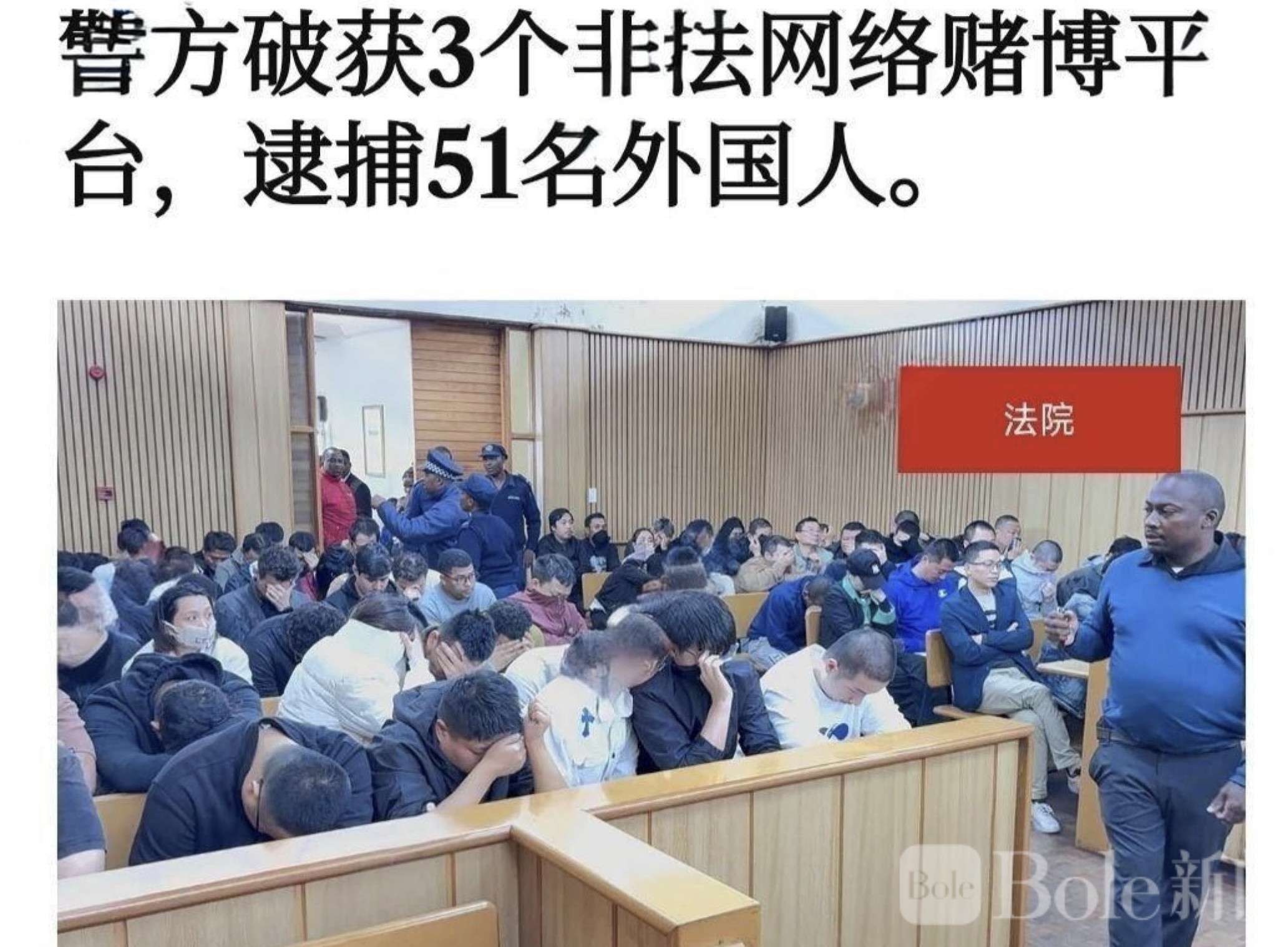 Bole新闻专讯:近日,非洲国家埃斯瓦蒂尼持续加大对跨国网络诈骗和非法赌博集团的打击力度。在最新一轮联合行动中,警方共抓获51名外籍嫌疑人,使自3月10日以来被捕人数累计升至146人,案件规模不断扩大。