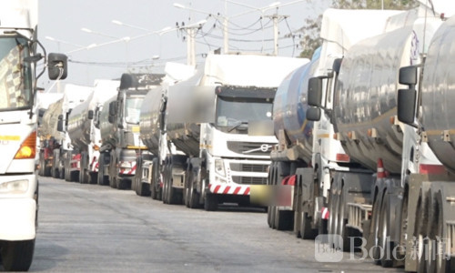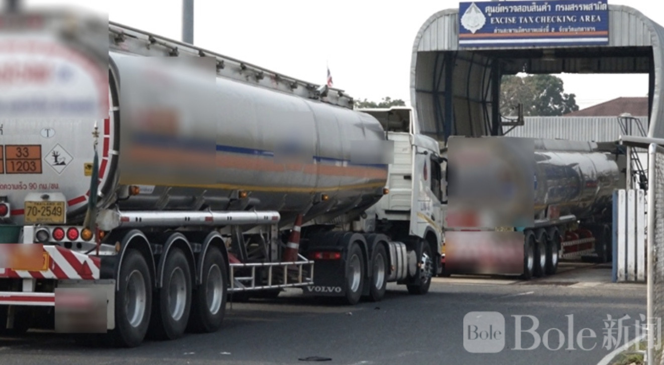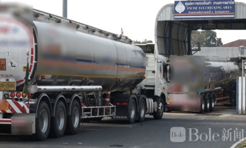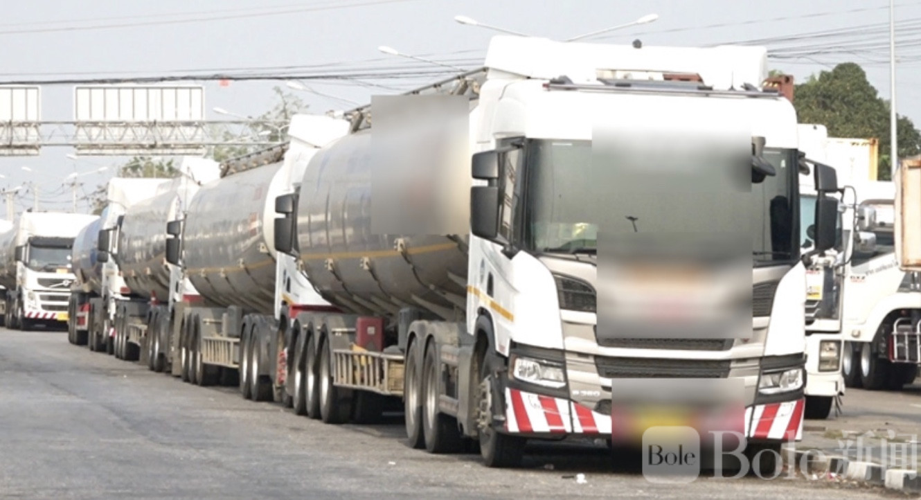 泰国边境40余辆油罐车排长龙,等待运往老挝!