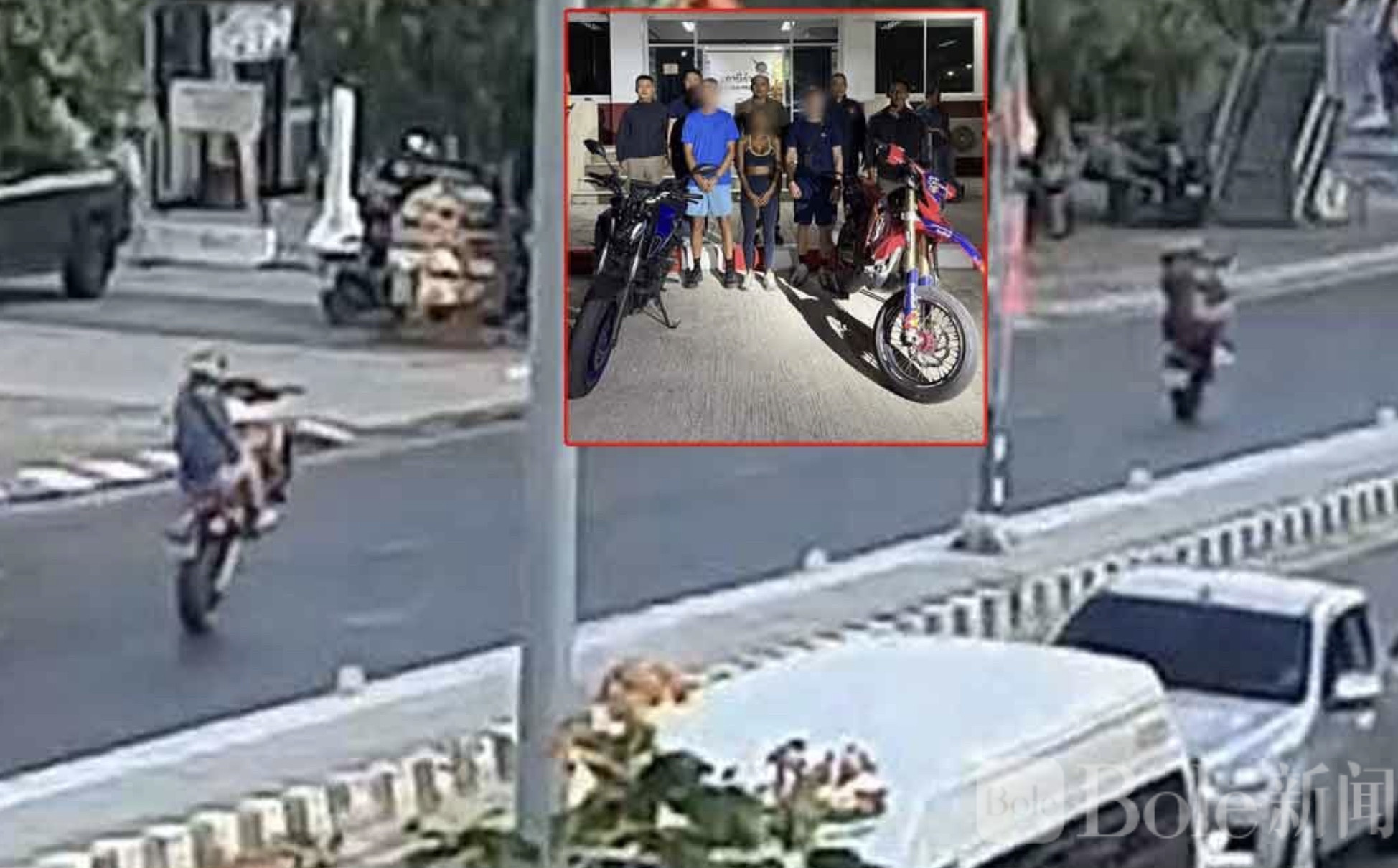 Bole新闻专讯:泰国普吉岛街头近日上演了一出“耍帅变翻车”的闹剧。两名外籍男子骑着摩托车在马路上玩起高难度“翘头”特技,视频被上传到社交媒体后迅速引发热议。当地警方很快介入调查,仅用约3小时便锁定两名涉事骑手,并将其带回警局处理。