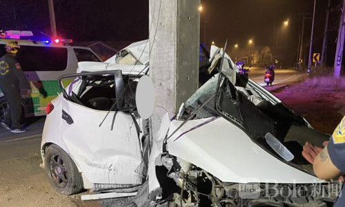 Bole新闻专讯:3月28日凌晨,泰国北部帕夭府发生一起严重交通事故。一辆白色轿车在经过当地一处被称为“死亡弯道”的路段时突然失控,车辆猛烈撞上路边电线杆,整车几乎被撞成废铁。车内一名约30岁的男子被困驾驶座,救援人员赶到时已无生命迹象,当场确认死亡。