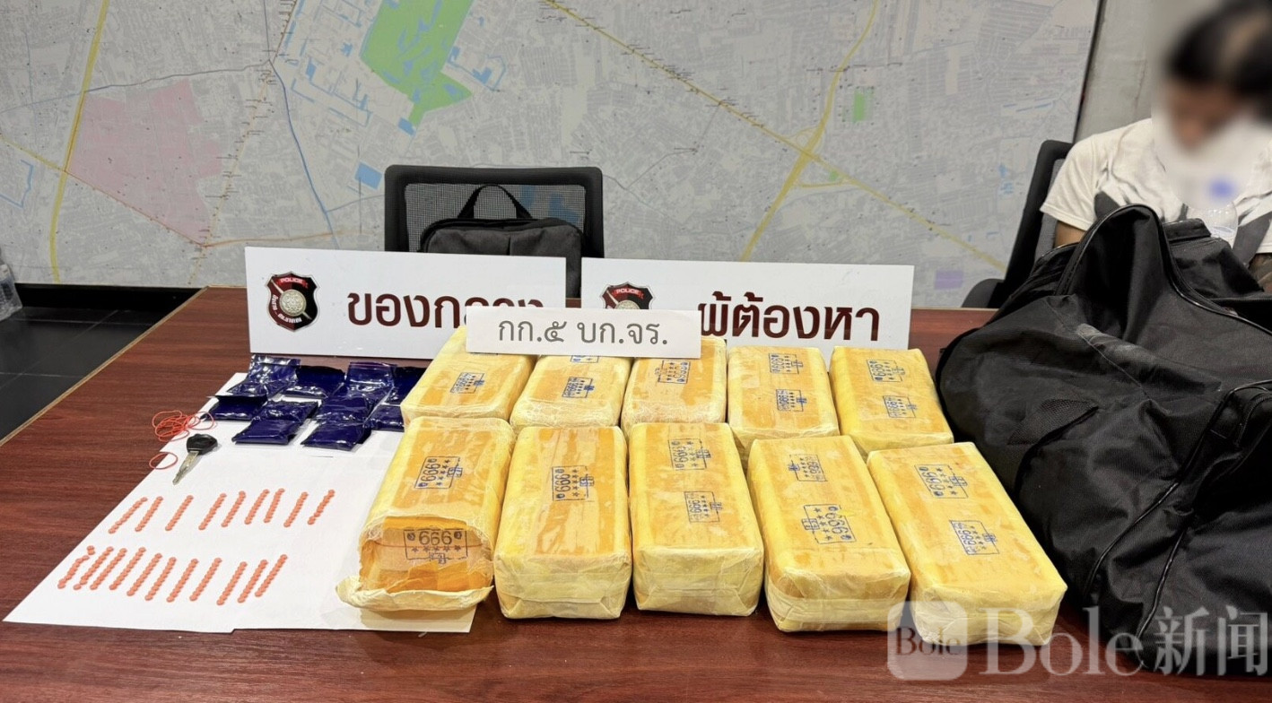 Bole新闻专讯:泰国曼谷警方于2026年3月31日展开路面执法行动,在拉敏特拉路一处酒精检测点附近,当场查获一起重大毒品运输案件,现场缴获约100,000粒毒品,并逮捕两名涉案男子。