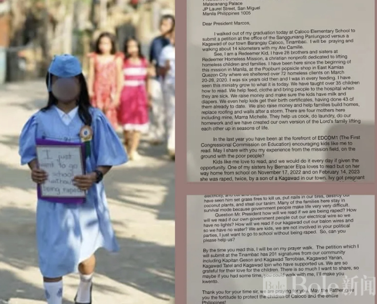 Bole新闻专讯:一封来自11岁女童的求助信,近日牵动了菲律宾全国上下的目光——菲律宾总统马科斯在读完这封字字泣血的信件后,当场动容,不仅直言“几乎落泪、无比愤怒”,更第一时间下令派遣警察,前往南甘马仁省的一个小区,保护这名女童和其他受害儿童,誓要将所有加害者绳之以法。