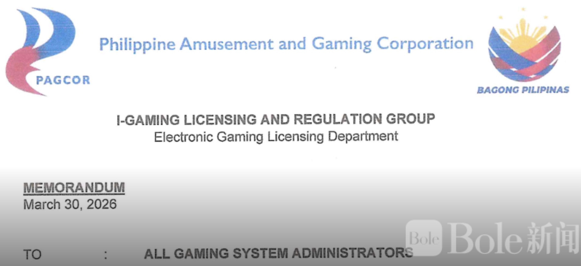 Bole新闻专讯:菲律宾博彩管理局(PAGCOR)近日宣布,将原定于4月实施的电子博彩系统管理员(GSA)最低保证费(Minimum Guaranteed Fee,MGF)延迟至6月1日执行。这一决定是在3月26日董事会会议后作出的,主要考虑到“当前经济形势严峻”,给业界留下了两个月的缓冲期。
