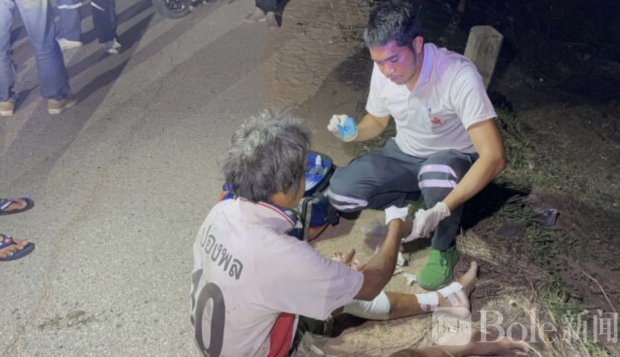 事故发生在当地时间21时36分,救援中心接到报警后,十余名志愿救援人员携带照明设备迅速赶赴现场。事发地点位于干渠旁的堤坝路段,受伤男子名为贡查(Kunchon),身体多处擦伤,救援人员立即对其进行现场急救,并将其送往医院治疗。