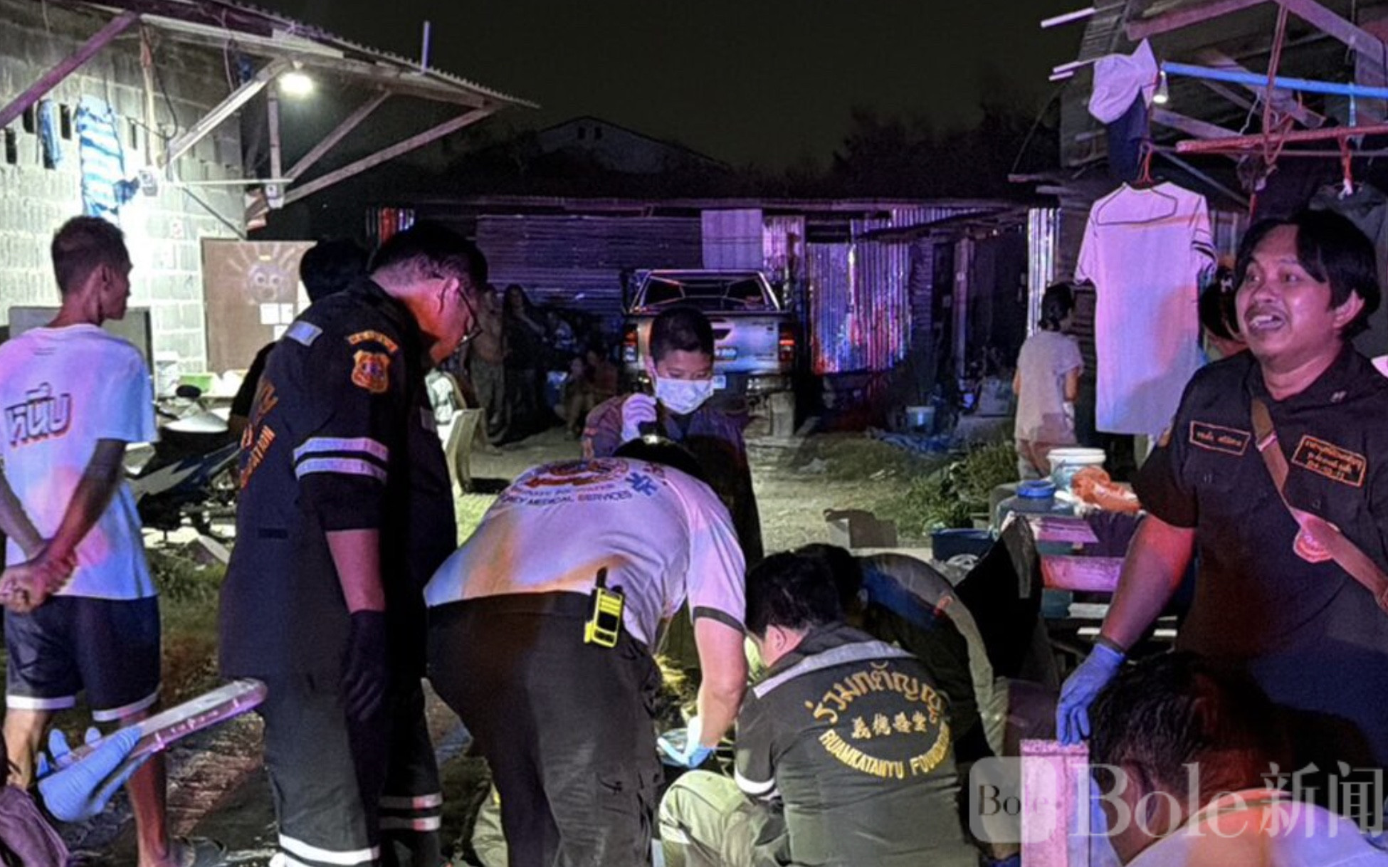 当日上午,帕卡兰急救中心接到报警,称在邦乔隆区一出租屋门前有人受伤。警方及救护人员立即赶赴现场进行处置。