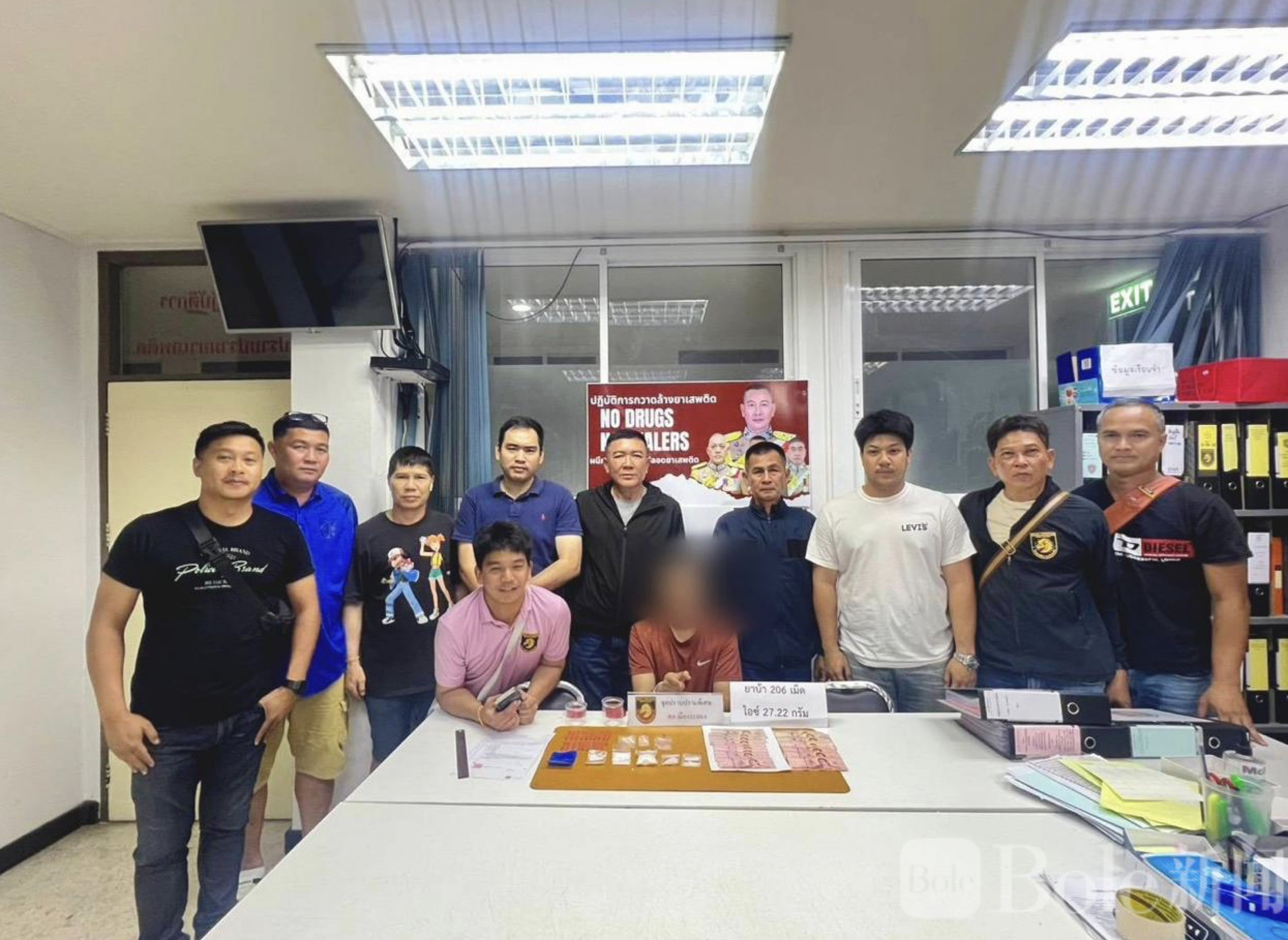 警方透露,此次抓捕行动是通过线人设局进行。尼提帕特以3700泰铢购买200粒冰毒药丸,当他驾车到达交易地点完成交易后,警方立即实施抓捕。行动中,执法人员查获206粒甲基苯丙胺药丸、27.22克冰毒、标记钞票3700泰铢、电子秤及一辆三菱Xpander汽车等证物。随后,警方对其住所进行搜查,又发现20多克冰毒及更多毒品交易工具。