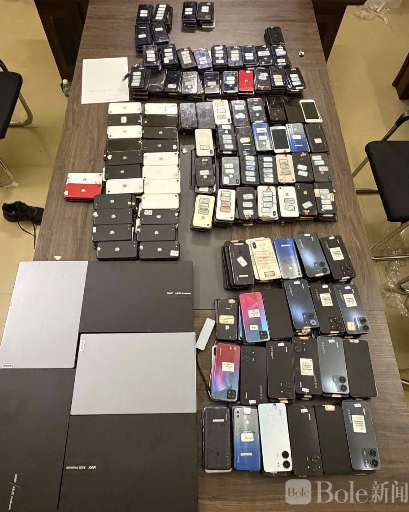 Bole新闻专讯:柬埔寨西港省宪兵近日展开一场针对电信诈骗窝点的突击行动,在当地第4分区第4村一栋办公楼内成功端掉一个隐蔽运行的诈骗据点,一口气抓获49名外籍嫌疑人,现场设备数量之多,也让人有点“触目”的感觉。