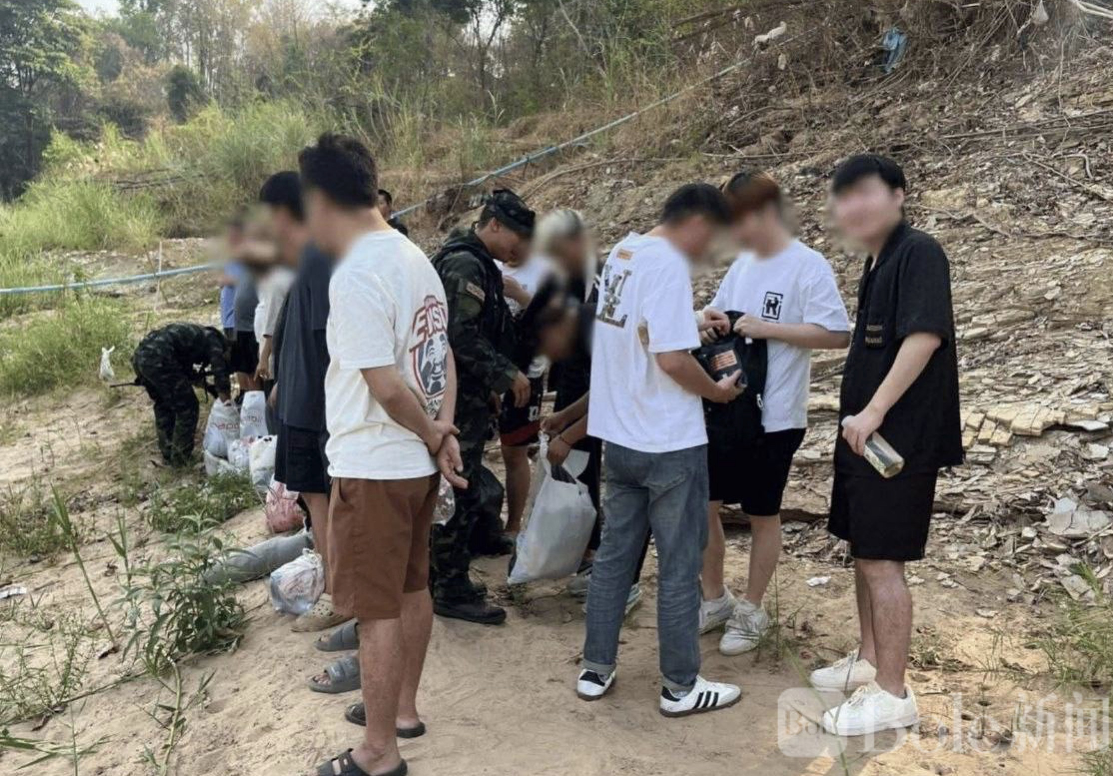 Bole新闻专讯:泰缅边境再现偷渡事件。4月11日上午,20名中国籍人员从缅甸克伦邦妙瓦底地区出发,试图越过边境进入泰国湄索,但在渡河后不久就被泰国军方巡逻部队当场拦截,整个行动几乎没有给他们留下太多逃离的空间。