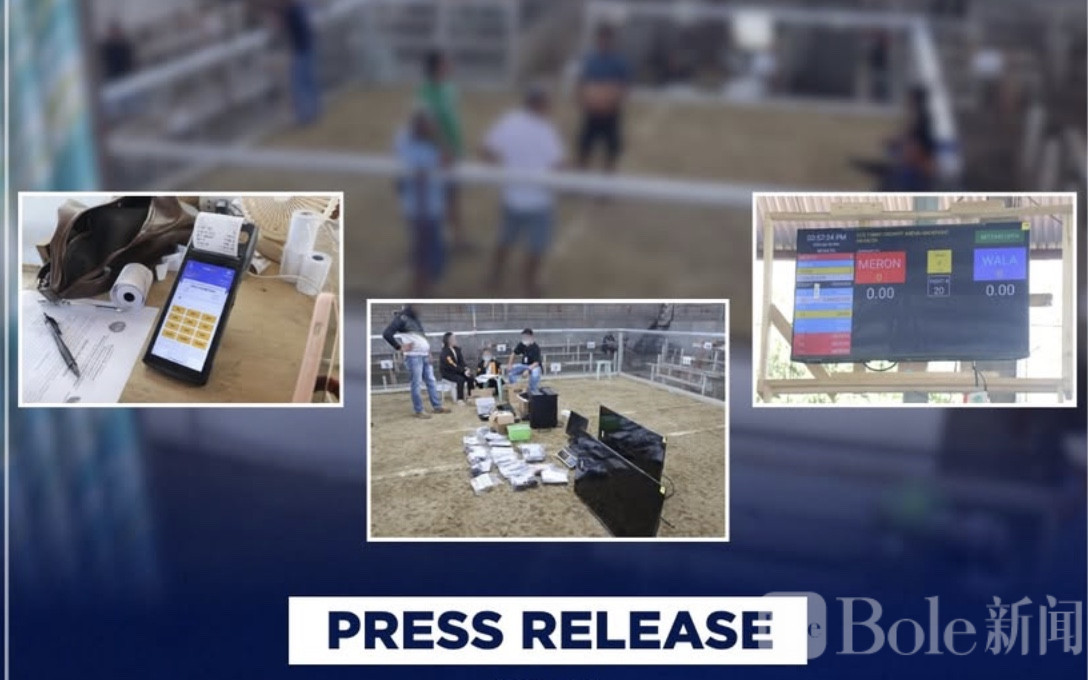 Bole新闻专讯:菲律宾国家调查局卡拉加区办公室(NBI-CARAGA)近日在阿古桑北省图拜镇开展突击执法行动,成功查获一处涉嫌非法线上斗鸡(E-sabong)的窝点,并当场逮捕22名涉案人员,案件涉及违反斗鸡法规及网络犯罪相关法律。