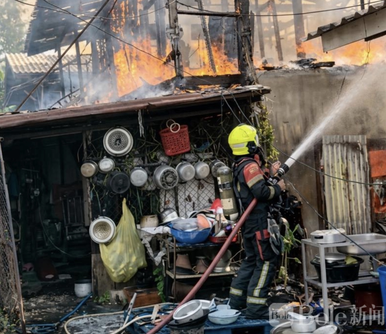 Bole新闻专讯:2026年4月12日清晨,泰国曼谷拉甲邦区一处居民区突发火灾,一栋两层木质民宅在短时间内被大火吞噬,所幸未造成人员伤亡,目前相关部门正对起火原因展开详细调查。