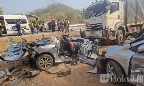 Bole新闻专讯:2026年4月11日下午,泰国南邦府腾县一段公路发生严重连环车祸,一辆18轮大型卡车失控撞上多辆车辆,事故共造成2人死亡、8人受伤,现场情况惨烈,目前警方正对事故原因展开调查。
