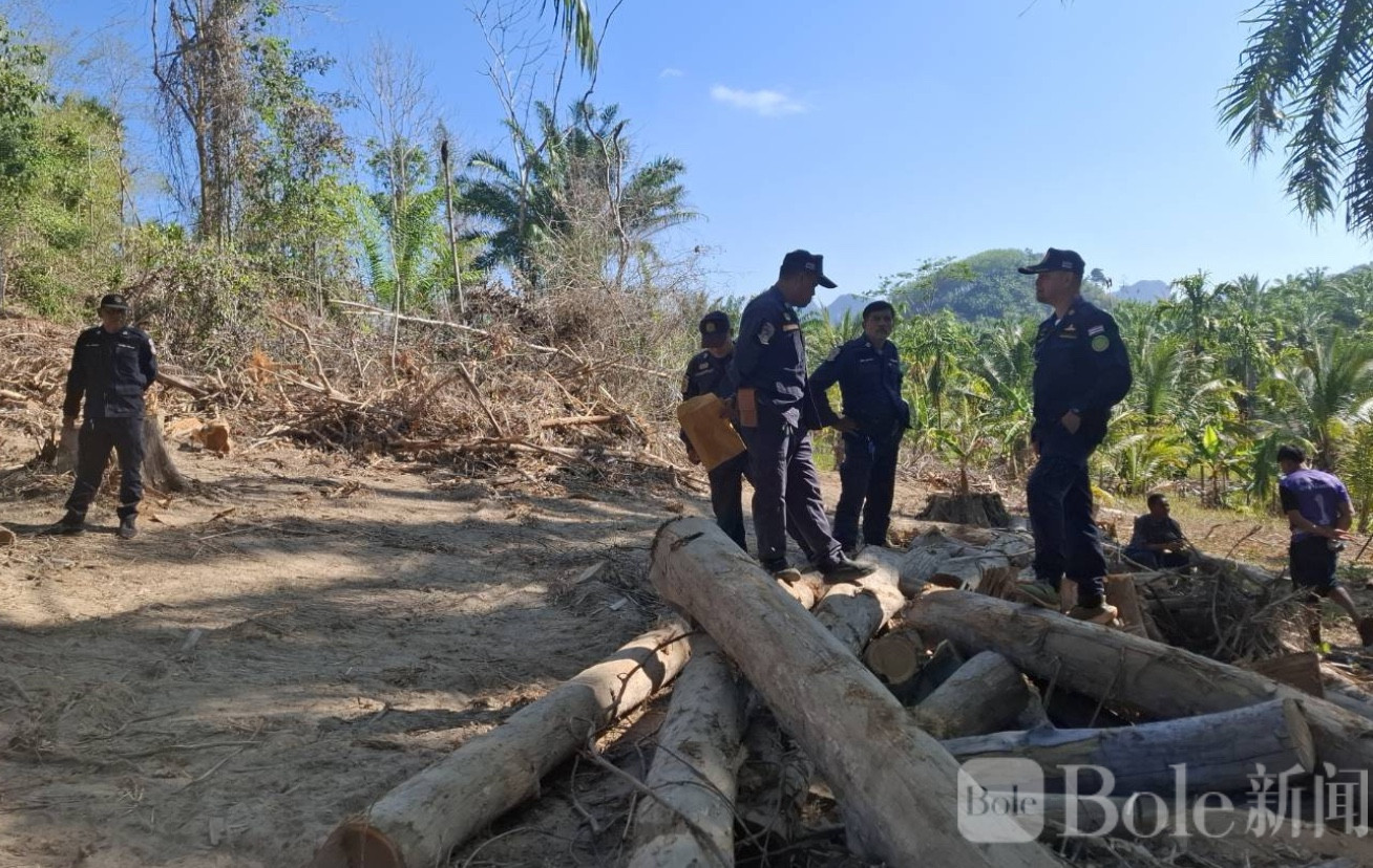 Bole新闻专讯:泰国春蓬府近日发生一起严重非法盗伐案件,执法部门在当地“通拉亚-纳萨克”保护森林区域展开联合检查时,发现大片珍贵柚木林遭到破坏,现场情况触目惊心,引发社会关注。