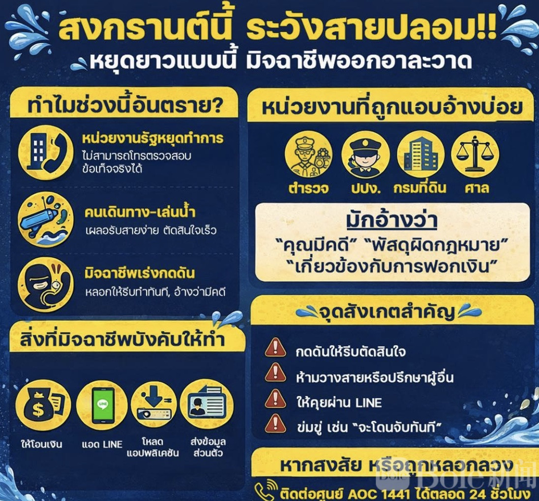 宋干节诈骗高发,泰国警方紧急提醒谨防冒充官员