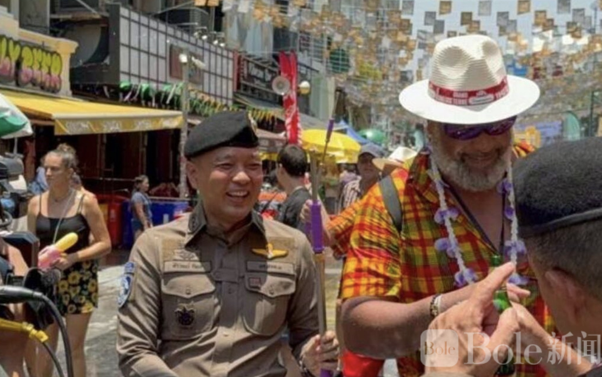 据警方预估,去年宋干节期间,来到考山路参与泼水活动的游客大约达到10万人次。今年情况或许也差不多,甚至可能略有增加,因此安保措施自然也要“升级一点点”。