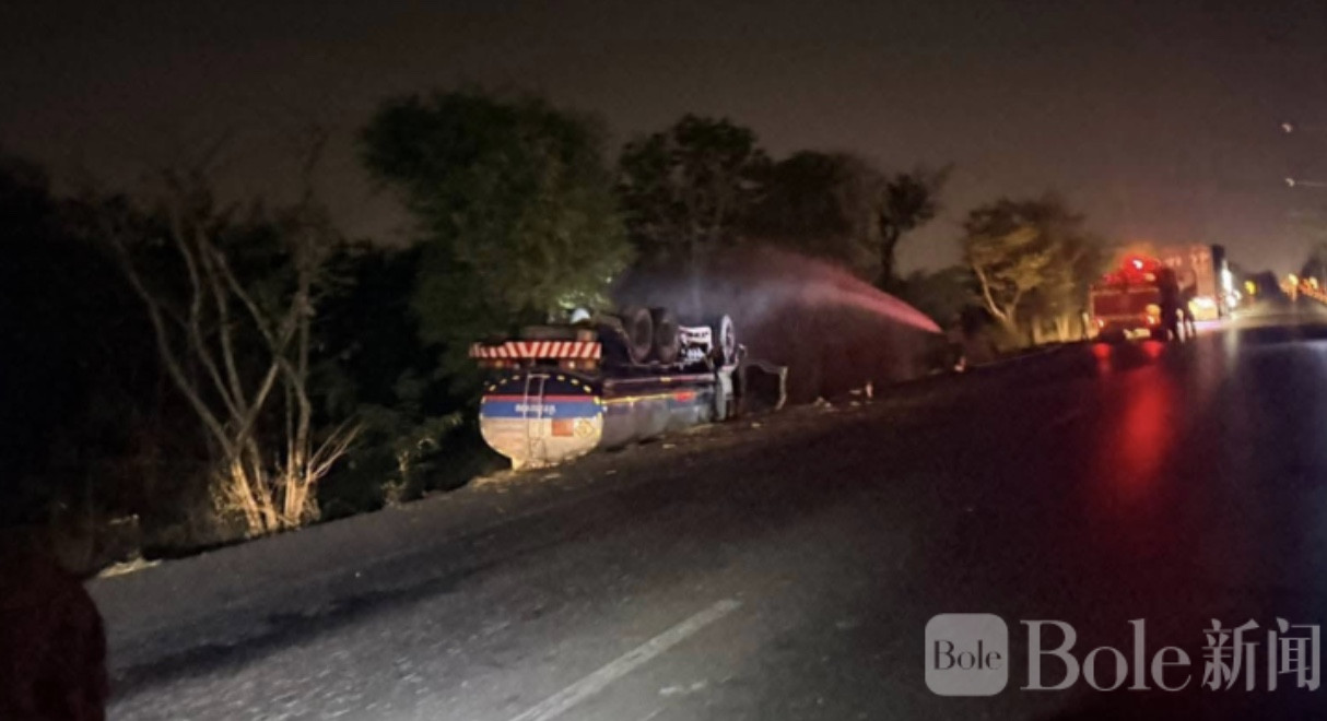 Bole新闻专讯:泰国华欣旁路近日发生一起惊险交通事故,一辆满载16000升燃油的油罐车在宋干节期间突然侧翻,现场出现燃油泄漏,当局紧急封路处置,所幸暂无人员伤亡。