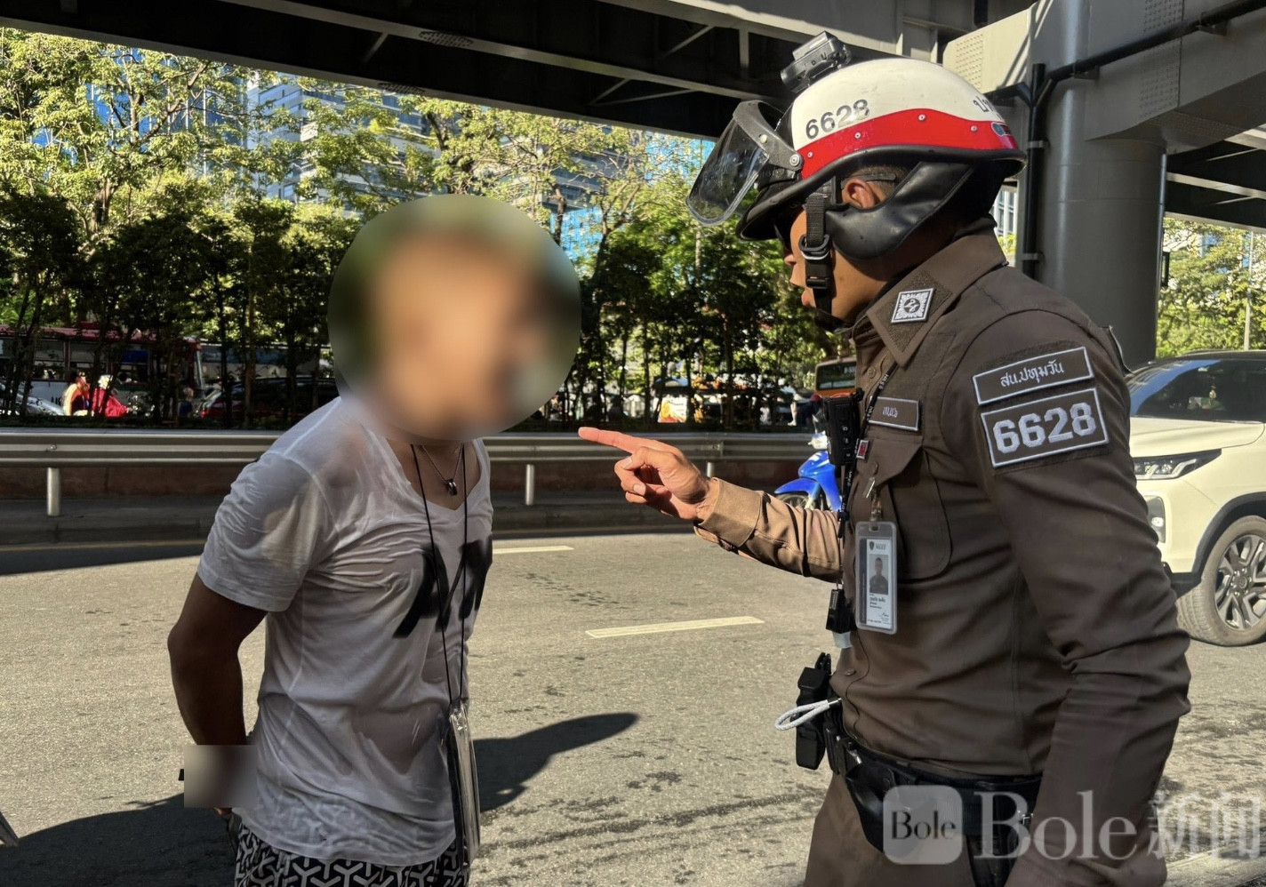 警方随即将嫌疑人带回帕吞旺警局(Phatumwan Police Station)调查。过程中,嫌疑人一度抗拒并表现出攻击性。