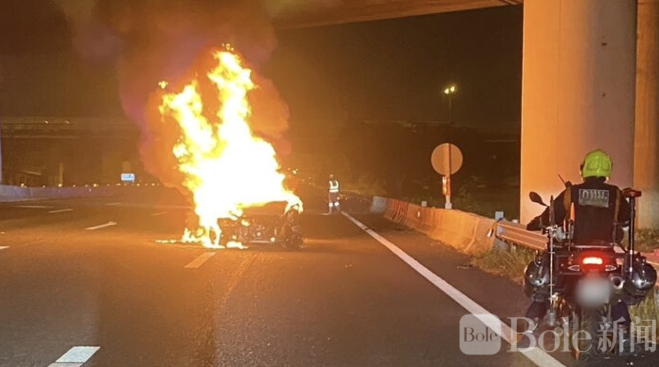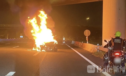 Bole新闻专讯:2026年4月14日凌晨03时08分,泰国曼谷帕威区一段高速公路(摩托威路KM6+400附近)突发一起汽车火灾事故,一辆雷克萨斯轿车在行驶过程中突然起火,短时间内被大火吞噬,几乎烧毁殆尽,仅剩车架残骸。