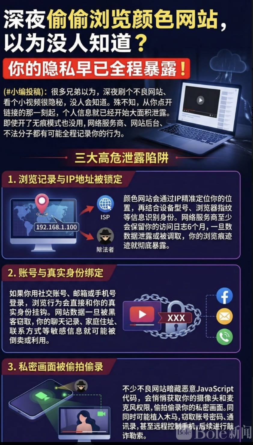 深夜偷偷浏览颜色网站,以为没人知道?隐私早已全程暴露!