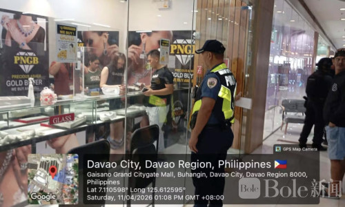 Bole新闻专讯:菲律宾棉兰老岛Kidapawan市一起珠宝劫案持续发酵。警方正在调查一宗涉案金额约1300万披索的当铺抢劫案,并不排除存在“内鬼”协助的可能性。目前,两名与当铺相关的保安人员已被警方约谈调查,以厘清案发前后的关键细节。