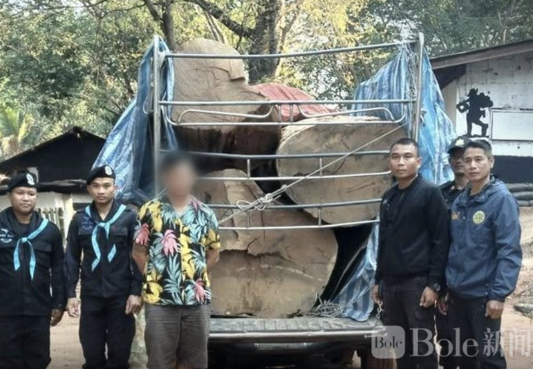 Bole新闻专讯:2026年4月15日凌晨0时55分,泰国黎府纳艾地区边防巡逻队联合素拉萨蒙特部队在丹赛—纳艾公路设卡检查行动中,成功截获一辆涉嫌运输非法木材的皮卡车,并查获3段巨型紫檀木,估值约20万泰铢。