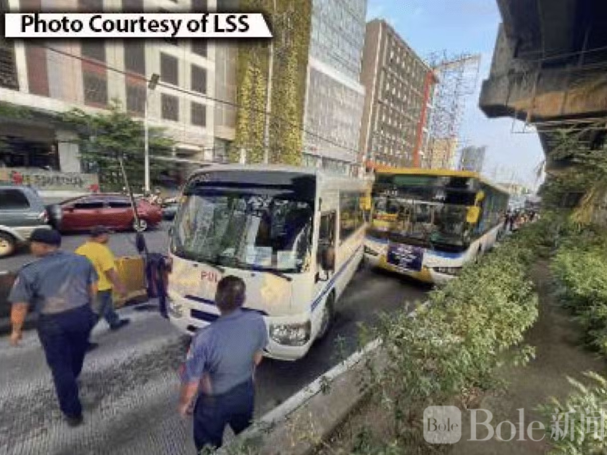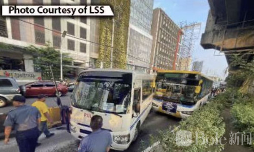 Bole新闻专讯:菲律宾国家警察近日确认,一辆警用接驳巴士在马尼拉奎松市EDSA公交专用道发生交通事故,与一辆公交车相撞。事故发生后,涉事驾驶员及其直属主管已被停职,相关行政调查正在推进。
