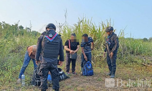 Bole新闻专讯:泰国沙缴府边境巡逻队近日在亚兰县一处天然通道成功截获4名非法入境人员,包括3男1女,均为柬埔寨籍,涉嫌通过非正规通道偷渡进入泰国准备务工。