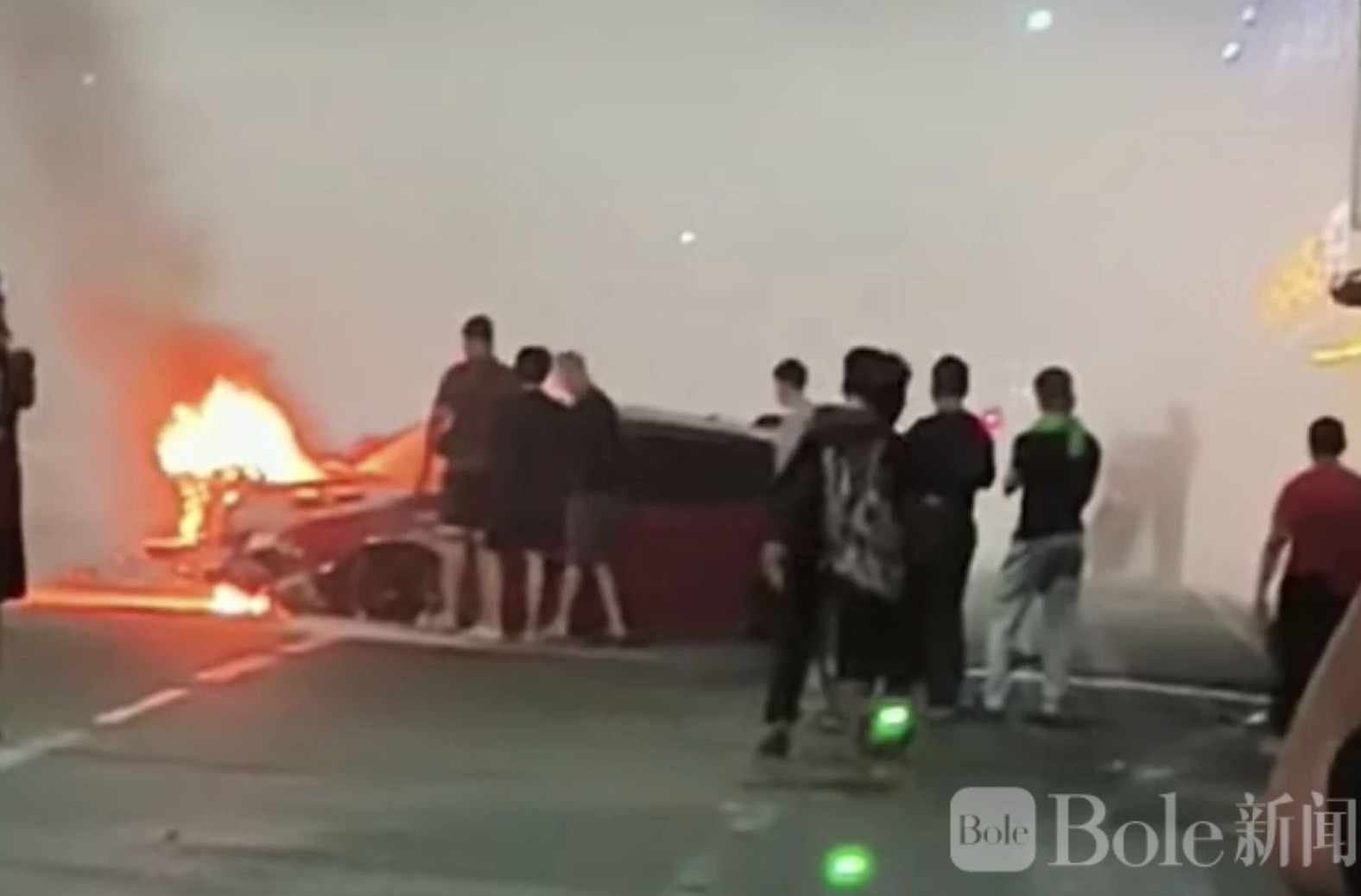 有现场志愿者在查看监控时提到一个细节,车辆在撞击后其实已经出现明显燃烧迹象,但仍在短时间内继续移动了一段距离,情况看起来比较异常,也让事故原因多了几分疑点。