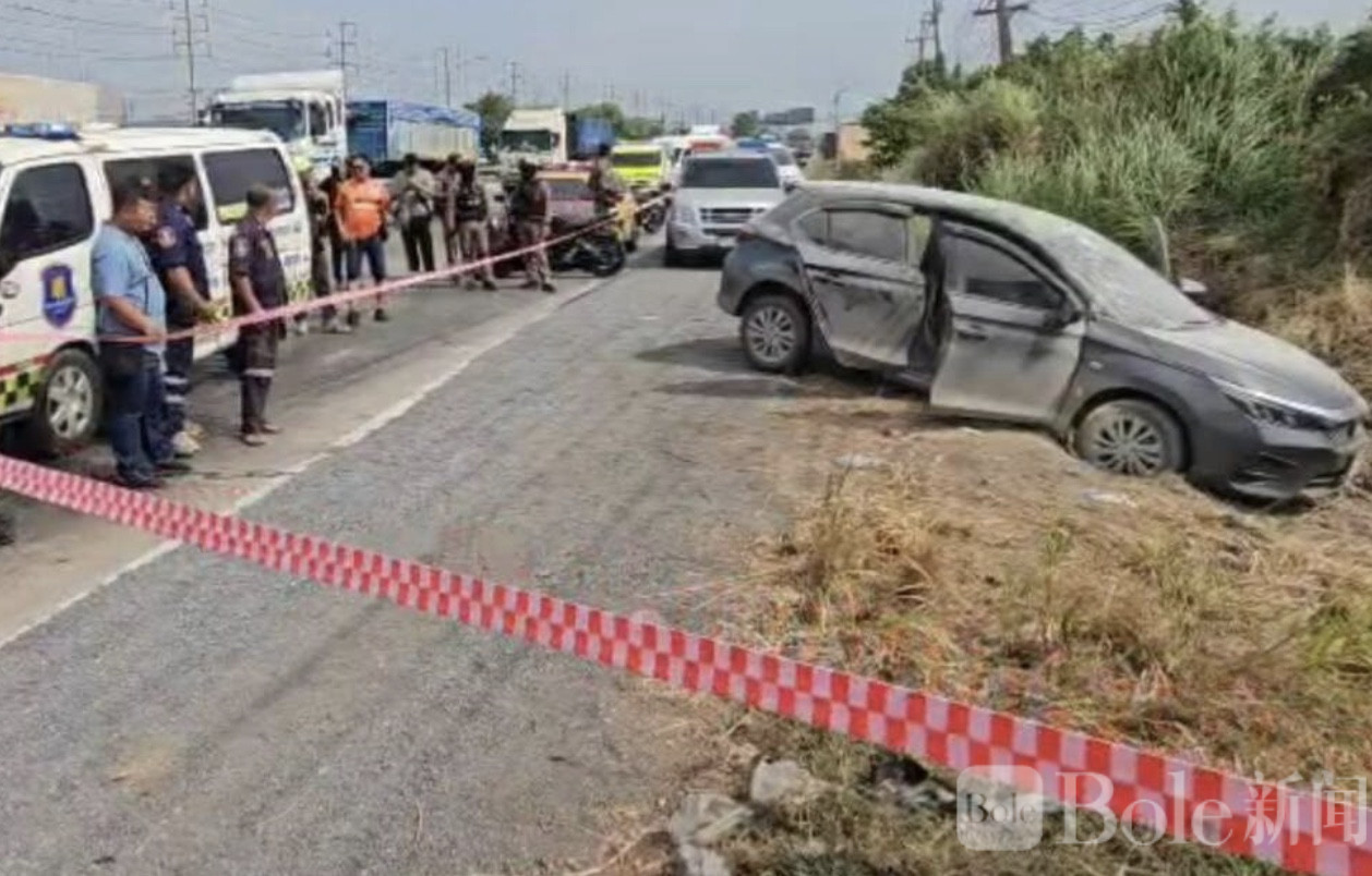 Bole新闻专讯:泰国沙拉武里府直辖县帕凤裕庭路靠近帕考立交匝道入口处发生一起车辆起火死亡事件,一辆停在路边的本田City轿车起火燃烧,车内一名男子死亡,副驾驶座发现5升汽油桶,案件初步怀疑与纵火自杀有关,目前警方正调取监控并等待法医进一步鉴定。