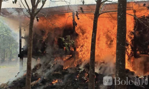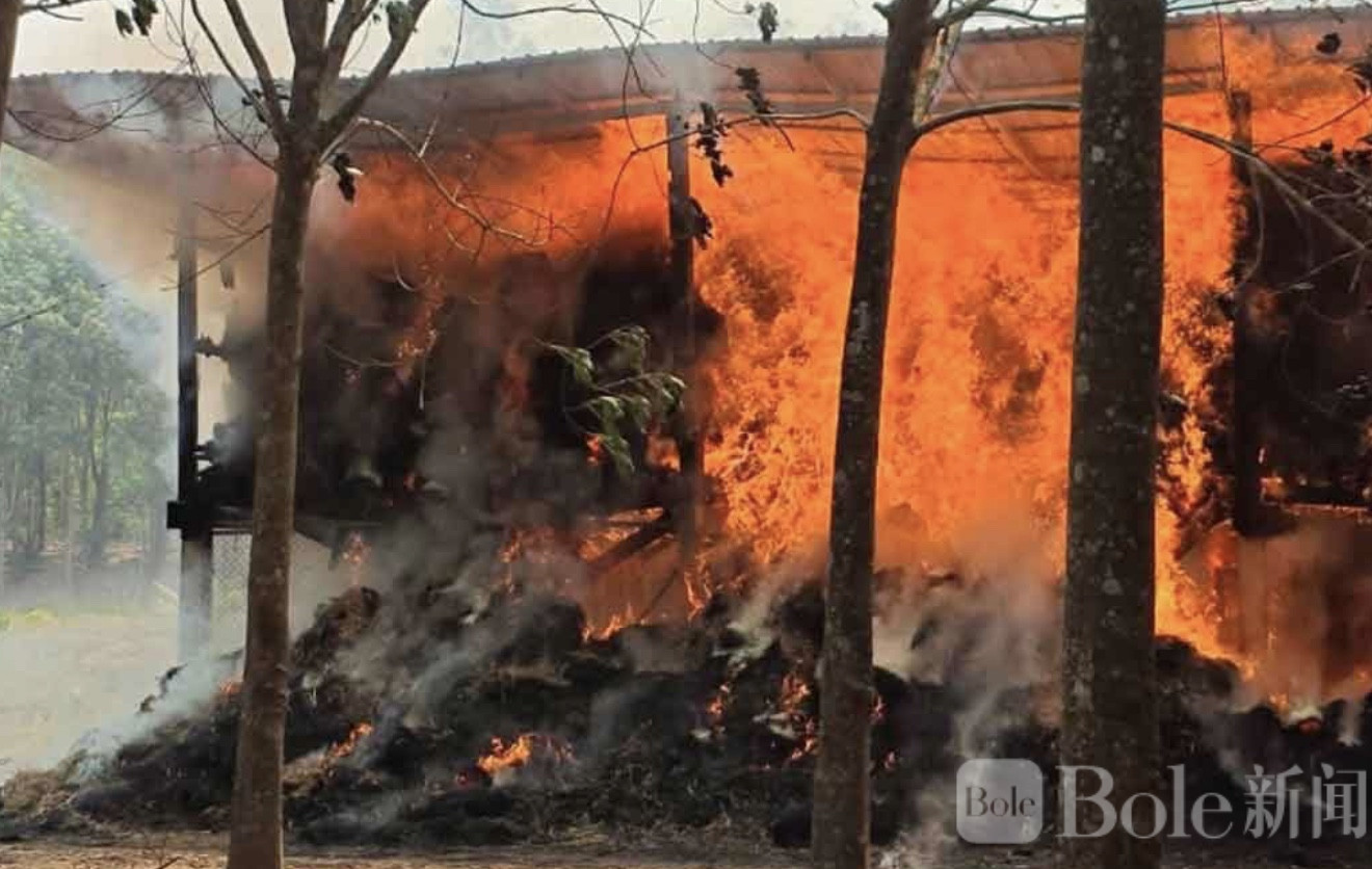 Bole新闻专讯:泰国帕尧府直辖县麦纳鲁亚镇3村班荣甘鲁昂一处养殖棚及畜栏4月23日突发火灾,整座棚舍被大火吞噬,造成严重经济损失。目前起火原因仍在进一步调查中。