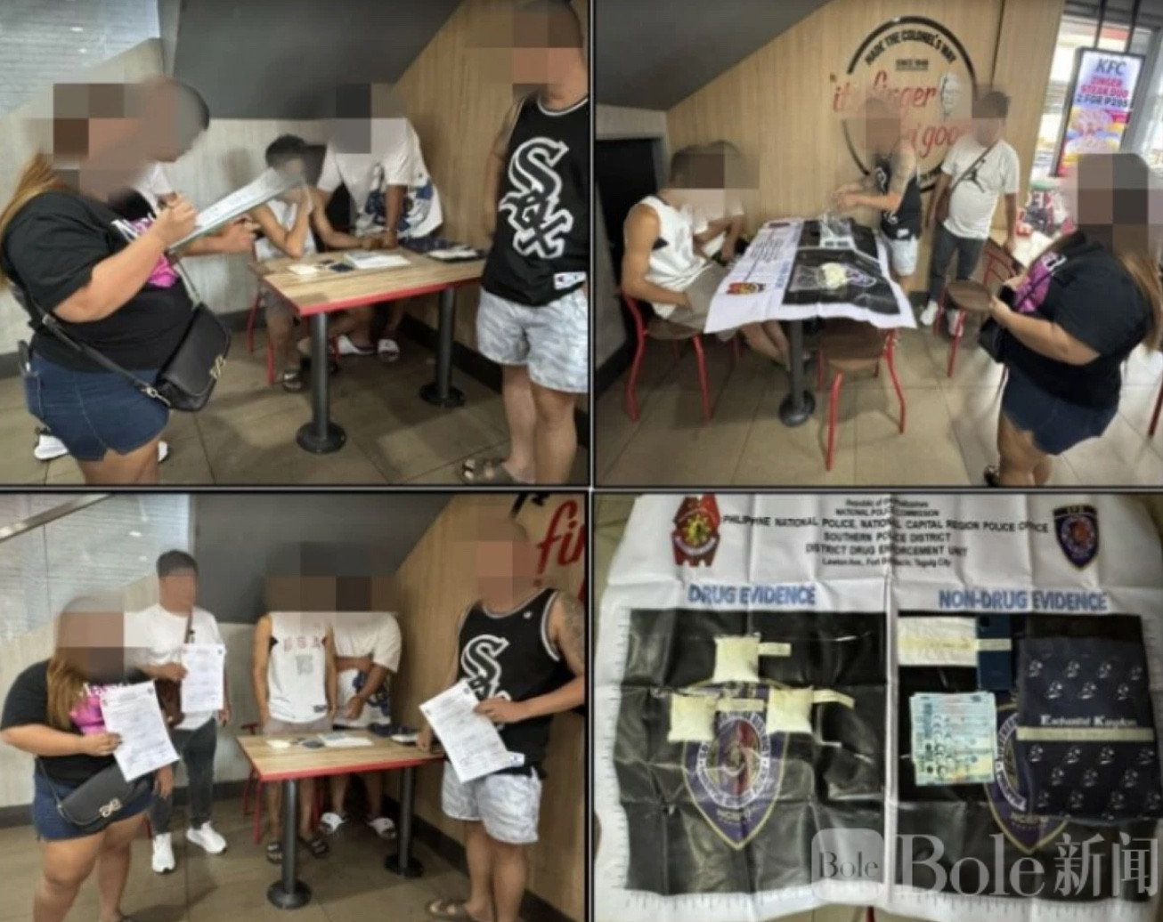 Bole新闻专讯:菲律宾警方近日在帕赛市一间快餐店内展开诱捕行动,当场抓获两名涉嫌贩毒嫌疑人,并查获价值约二百零四万比索的冰毒,现场就像普通消费场景,转眼却变成执法现场,多少有点“猝不及防”的意味。