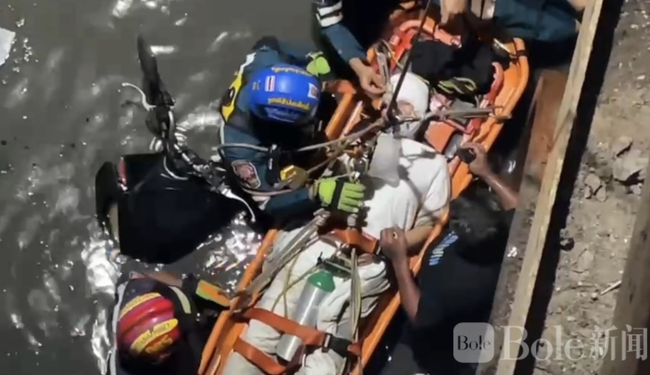 Bole新闻专讯:泰国暖武里府直辖县近日发生一起惊险事故,一辆摩托车在行驶途中不慎坠入施工中的地下水井,导致一名女子受伤昏迷,所幸经救援人员紧急施救后成功获救。