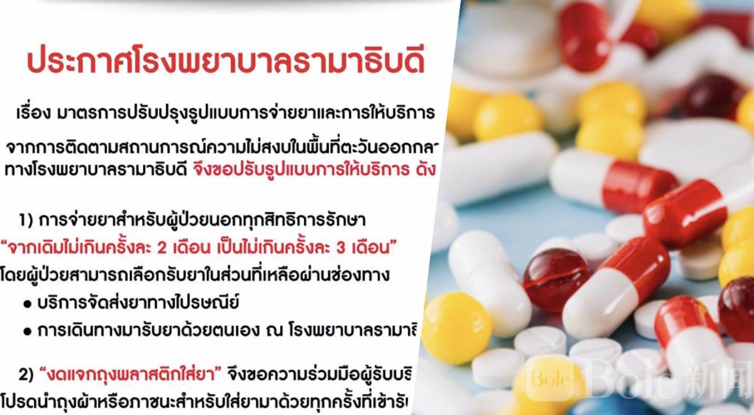 Bole新闻专讯:2026年4月26日,泰国拉玛提波迪医院正式发布公告,宣布将调整门诊患者的取药与服务模式,并同步实施环保措施。新规定将于2026年4月28日起正式生效。